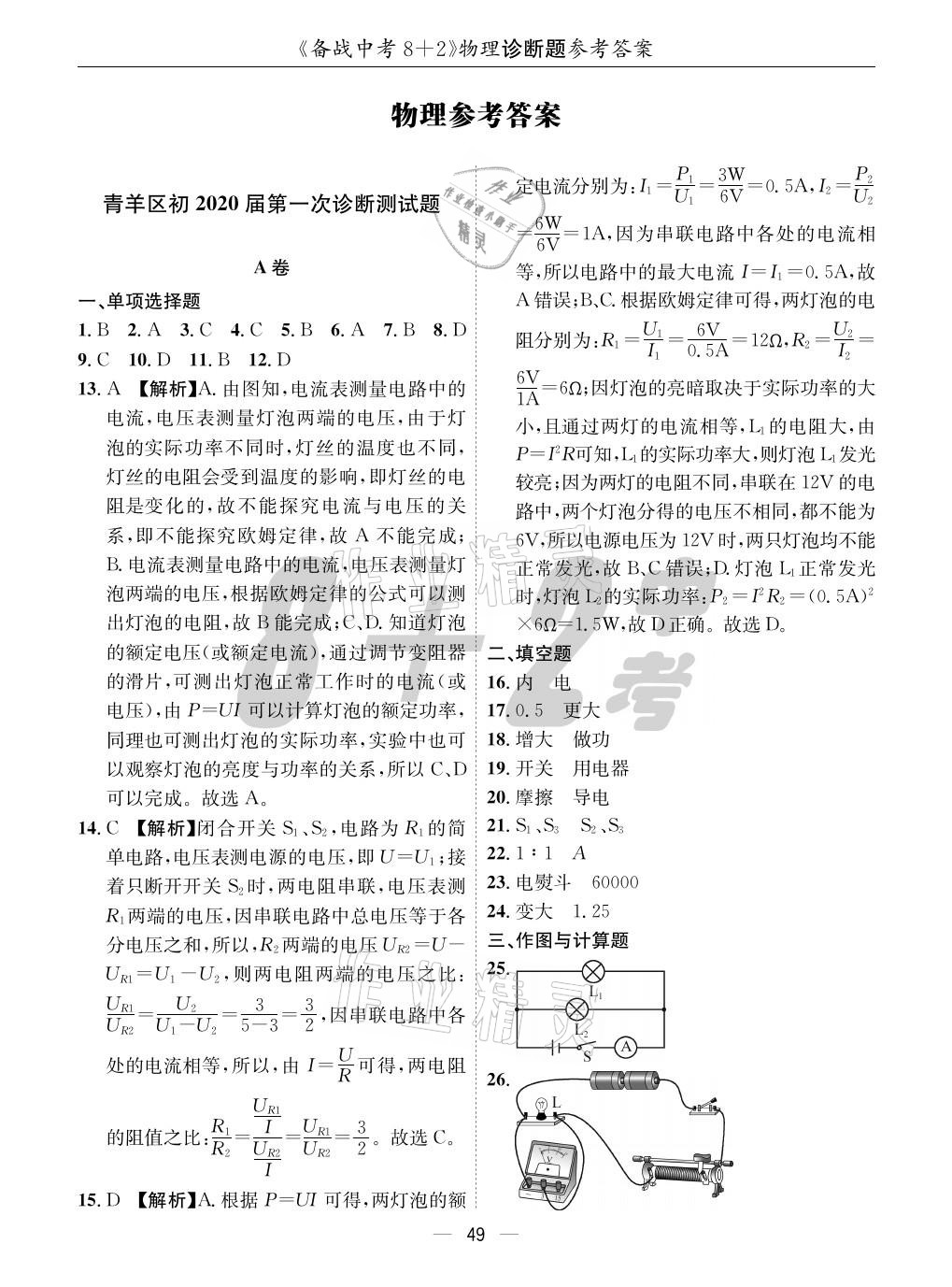 注:目前有些书本章节名称可能整理的还不是很完善,但都是按照顺序排列的,请同学们按照顺序仔细查找。练习册 2021年成都备战中考8加2物理 答案主要是用来给同学们做完题方便对答案用的,请勿直接抄袭。
