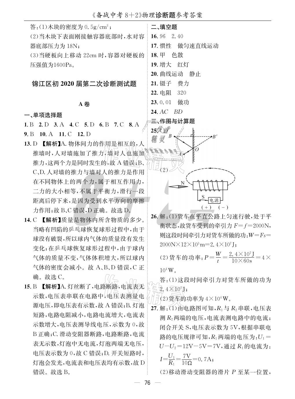 注:目前有些书本章节名称可能整理的还不是很完善,但都是按照顺序排列的,请同学们按照顺序仔细查找。练习册 2021年成都备战中考8加2物理 答案主要是用来给同学们做完题方便对答案用的,请勿直接抄袭。