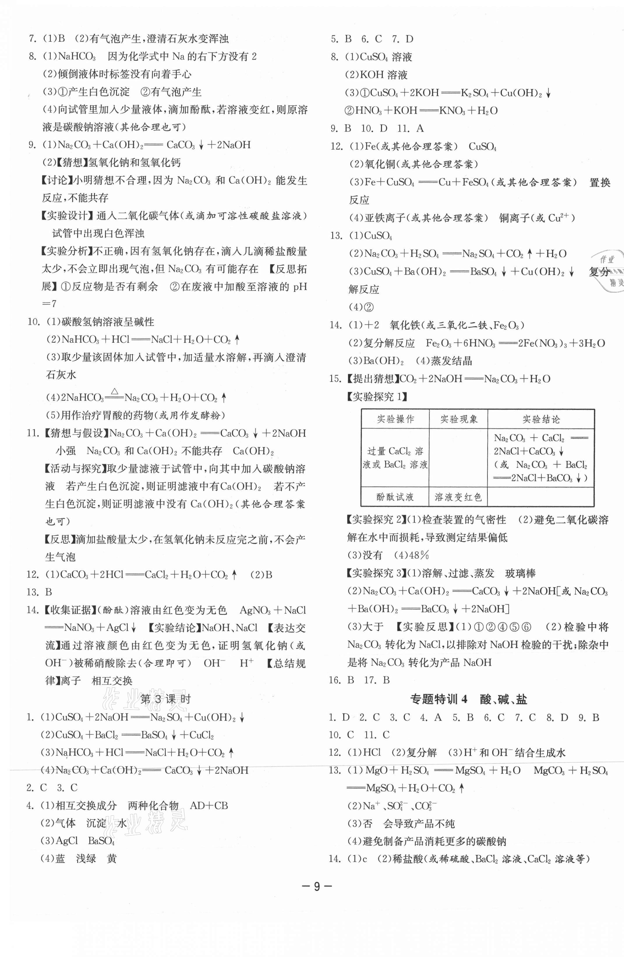 注:目前有些书本章节名称可能整理的还不是很完善,但都是按照顺序排列的,请同学们按照顺序仔细查找。练习册 2021年课时训练九年级化学下册人教版江苏人民出版社 答案主要是用来给同学们做完题方便对答案用的,请勿直接抄袭。