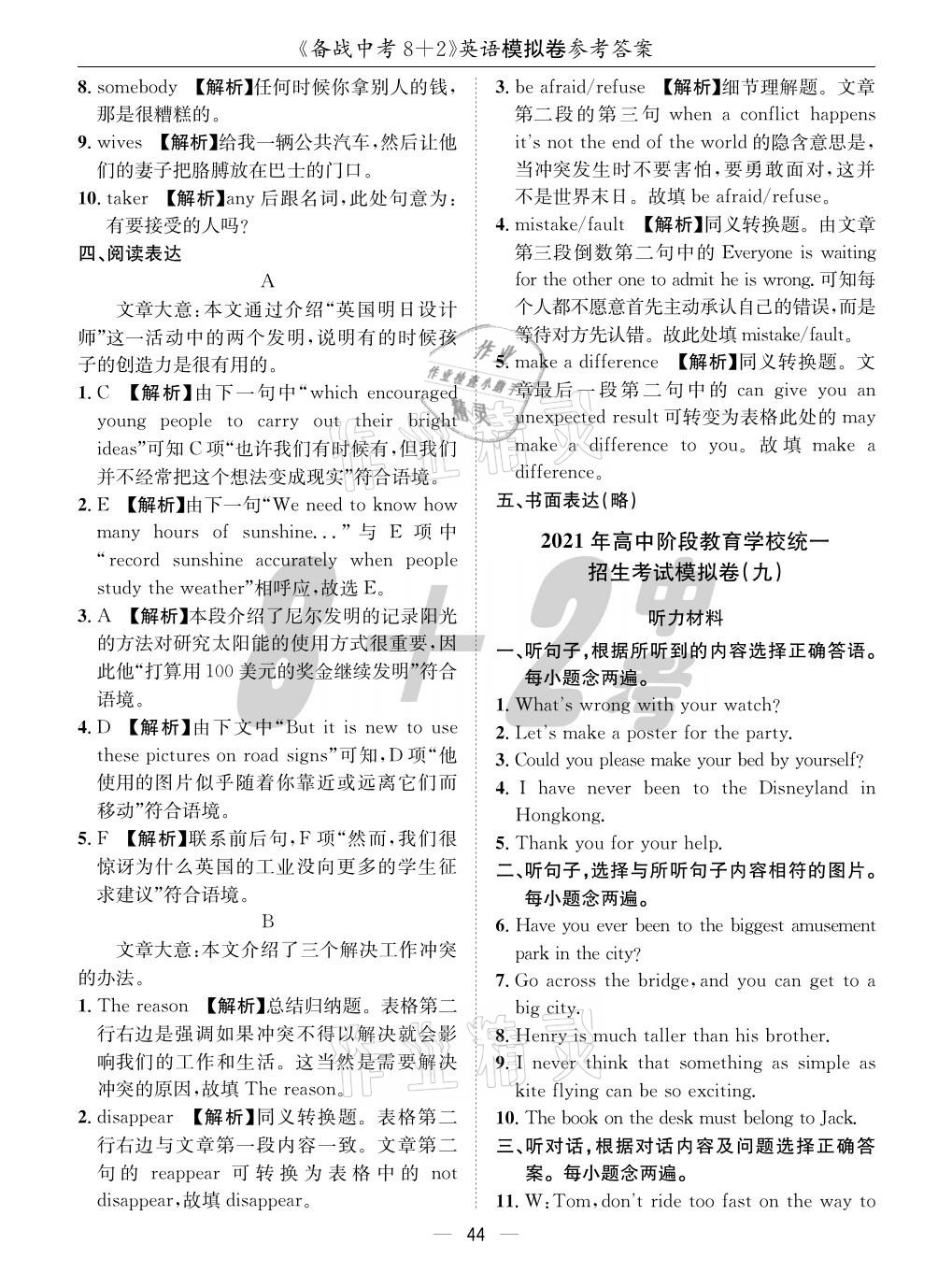 注:目前有些书本章节名称可能整理的还不是很完善,但都是按照顺序排列的,请同学们按照顺序仔细查找。练习册 2021年成都备战中考8加2英语 答案主要是用来给同学们做完题方便对答案用的,请勿直接抄袭。