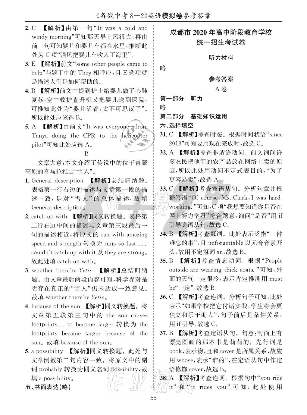 注:目前有些书本章节名称可能整理的还不是很完善,但都是按照顺序排列的,请同学们按照顺序仔细查找。练习册 2021年成都备战中考8加2英语 答案主要是用来给同学们做完题方便对答案用的,请勿直接抄袭。