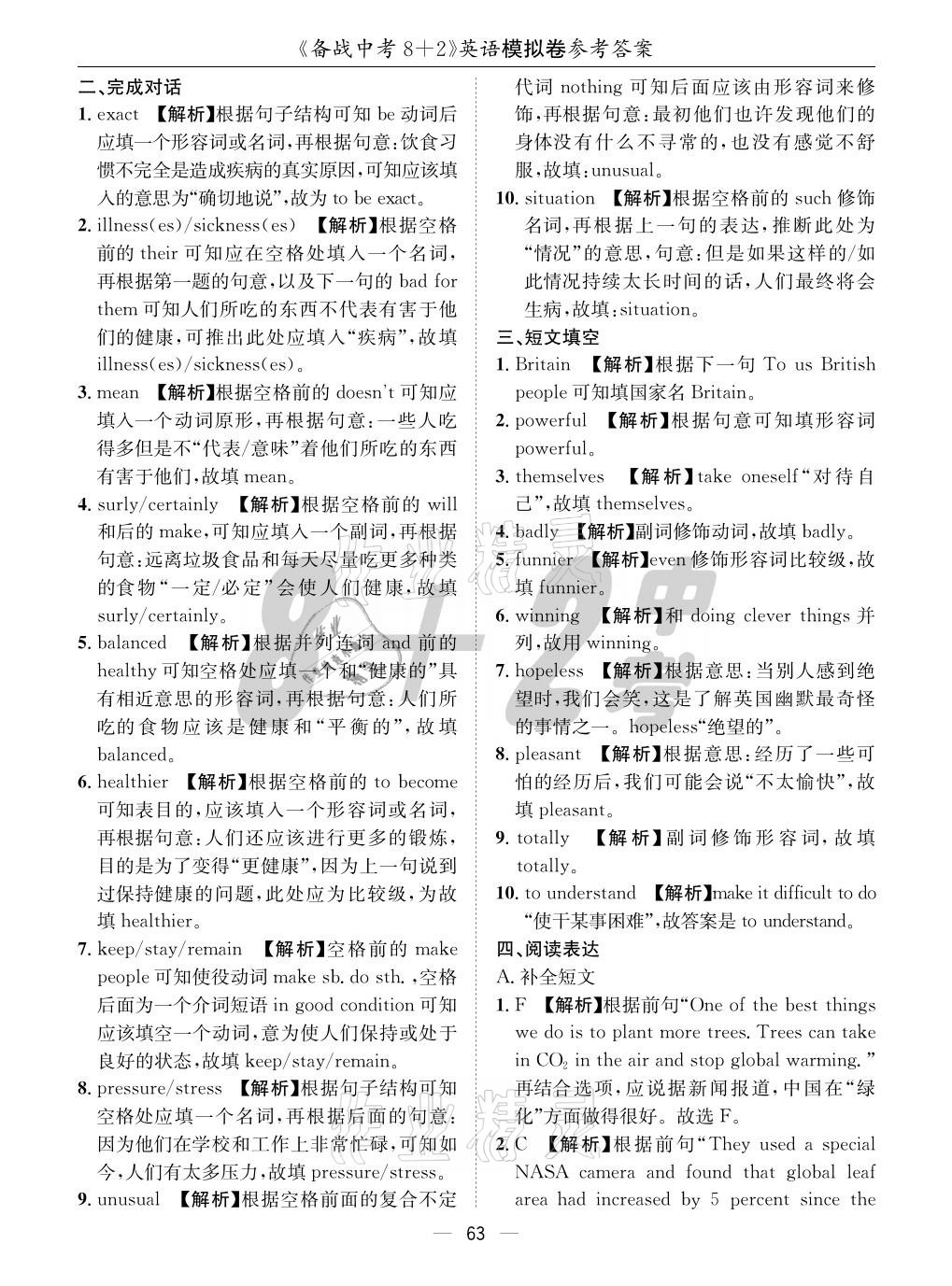 注:目前有些书本章节名称可能整理的还不是很完善,但都是按照顺序排列的,请同学们按照顺序仔细查找。练习册 2021年成都备战中考8加2英语 答案主要是用来给同学们做完题方便对答案用的,请勿直接抄袭。