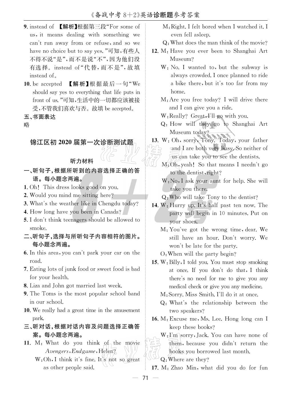 注:目前有些书本章节名称可能整理的还不是很完善,但都是按照顺序排列的,请同学们按照顺序仔细查找。练习册 2021年成都备战中考8加2英语 答案主要是用来给同学们做完题方便对答案用的,请勿直接抄袭。