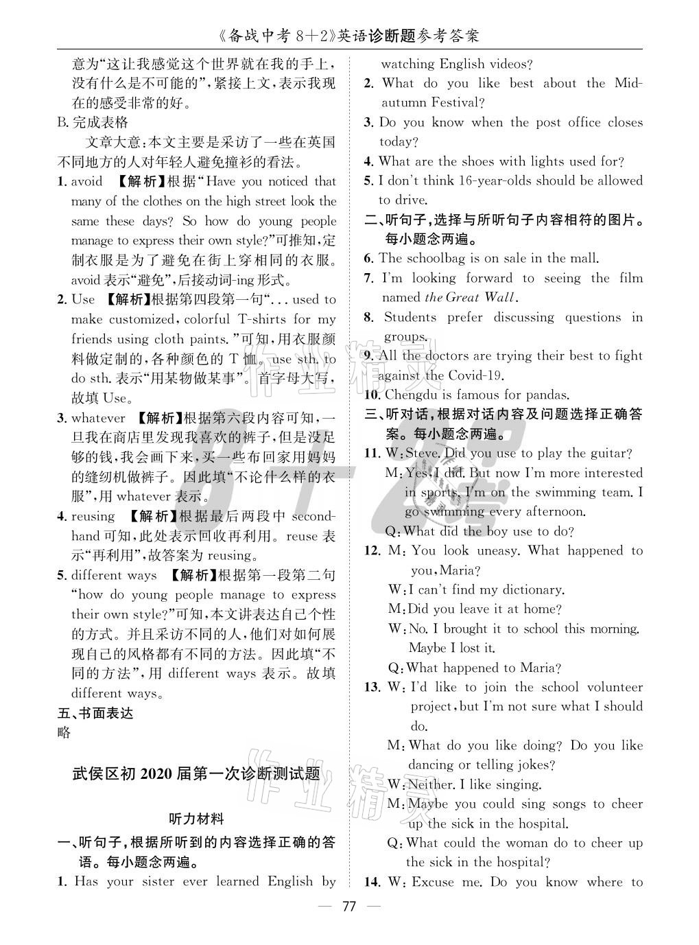 注:目前有些书本章节名称可能整理的还不是很完善,但都是按照顺序排列的,请同学们按照顺序仔细查找。练习册 2021年成都备战中考8加2英语 答案主要是用来给同学们做完题方便对答案用的,请勿直接抄袭。