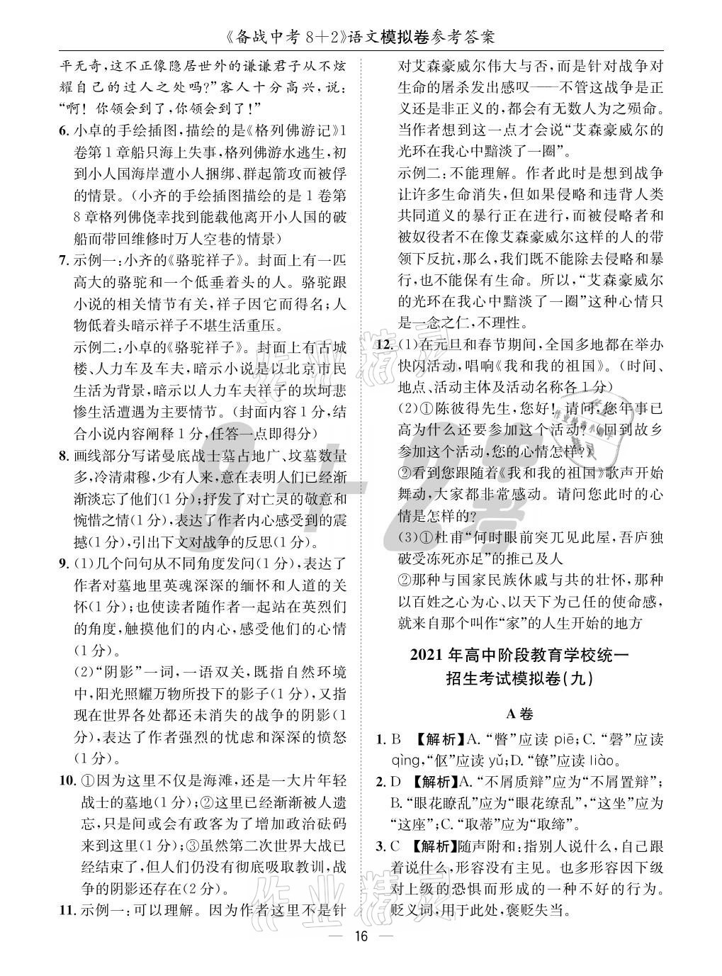 注:目前有些书本章节名称可能整理的还不是很完善,但都是按照顺序排列的,请同学们按照顺序仔细查找。练习册 2021年成都备战中考8加2语文 答案主要是用来给同学们做完题方便对答案用的,请勿直接抄袭。