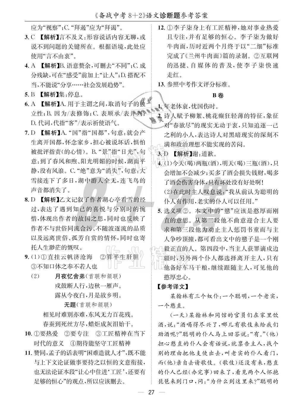 注:目前有些书本章节名称可能整理的还不是很完善,但都是按照顺序排列的,请同学们按照顺序仔细查找。练习册 2021年成都备战中考8加2语文 答案主要是用来给同学们做完题方便对答案用的,请勿直接抄袭。