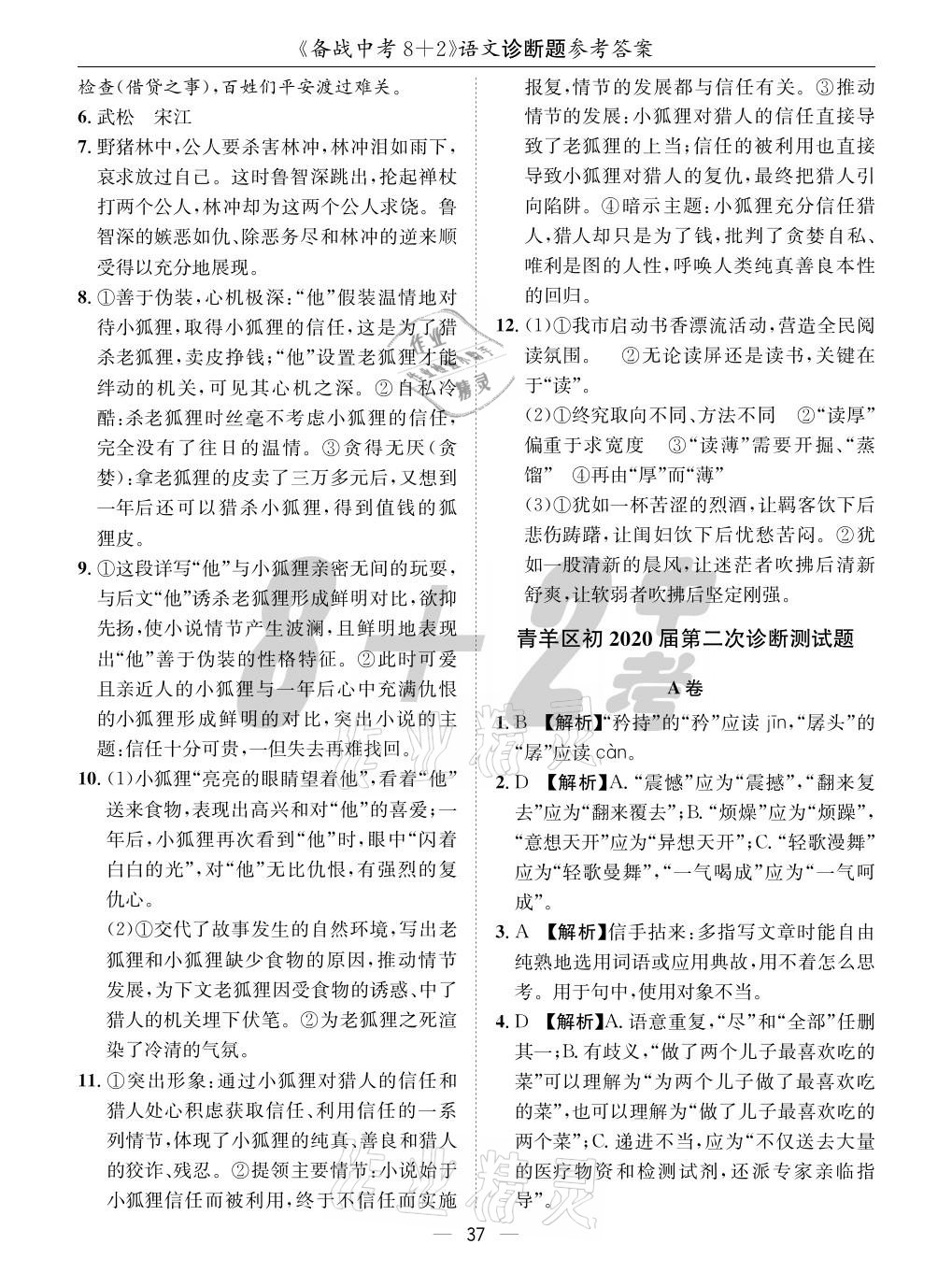 注:目前有些书本章节名称可能整理的还不是很完善,但都是按照顺序排列的,请同学们按照顺序仔细查找。练习册 2021年成都备战中考8加2语文 答案主要是用来给同学们做完题方便对答案用的,请勿直接抄袭。