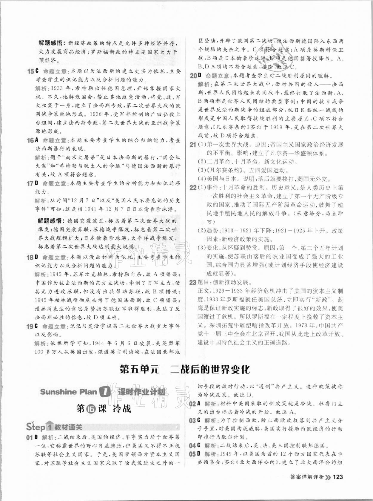 注:目前有些书本章节名称可能整理的还不是很完善,但都是按照顺序排列的,请同学们按照顺序仔细查找。练习册 2021年阳光计划初中同步九年级历史下册人教版 答案主要是用来给同学们做完题方便对答案用的,请勿直接抄袭。