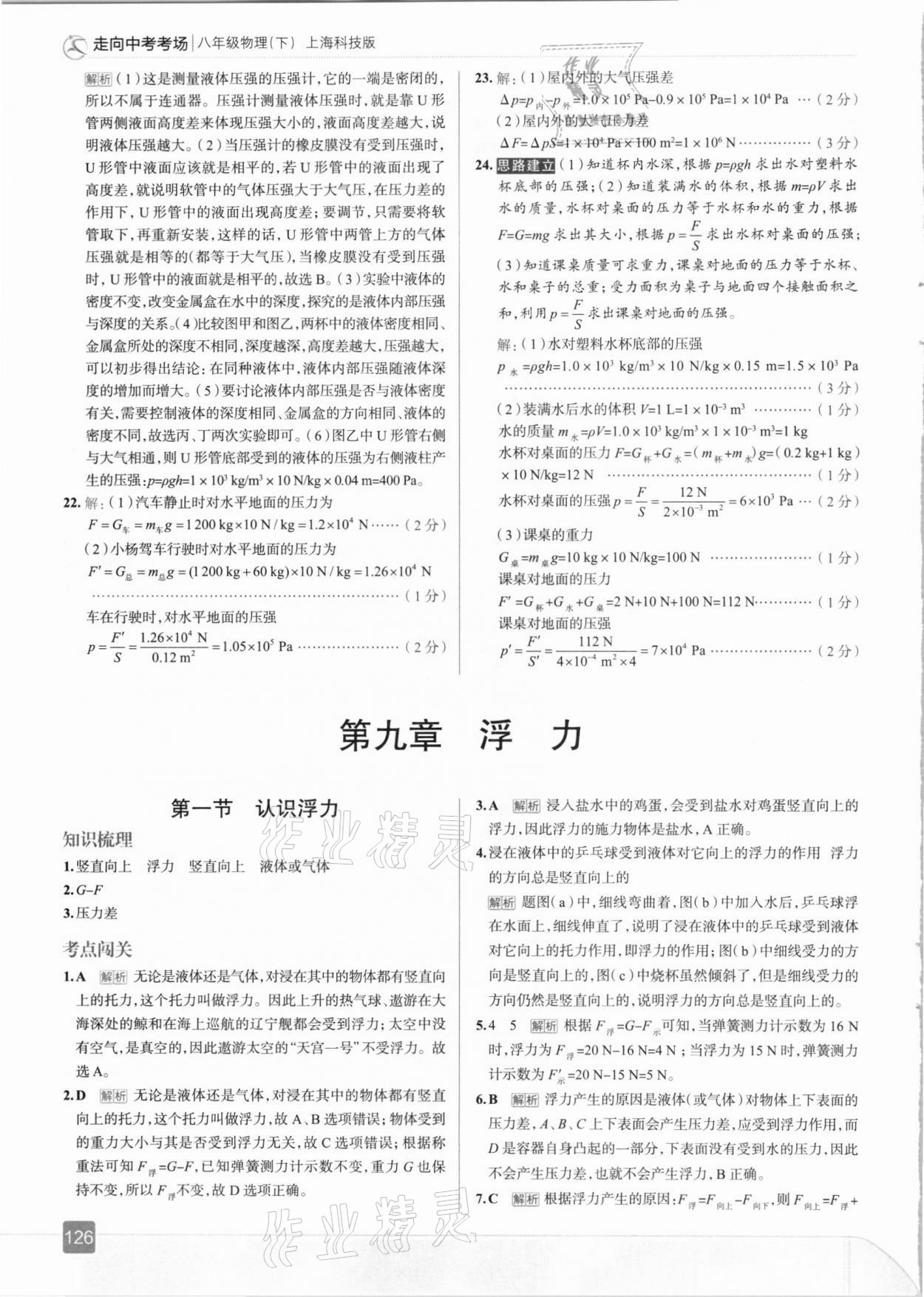 注:目前有些书本章节名称可能整理的还不是很完善,但都是按照顺序排列的,请同学们按照顺序仔细查找。练习册 2021年走向中考考场八年级物理下册沪科版 答案主要是用来给同学们做完题方便对答案用的,请勿直接抄袭。