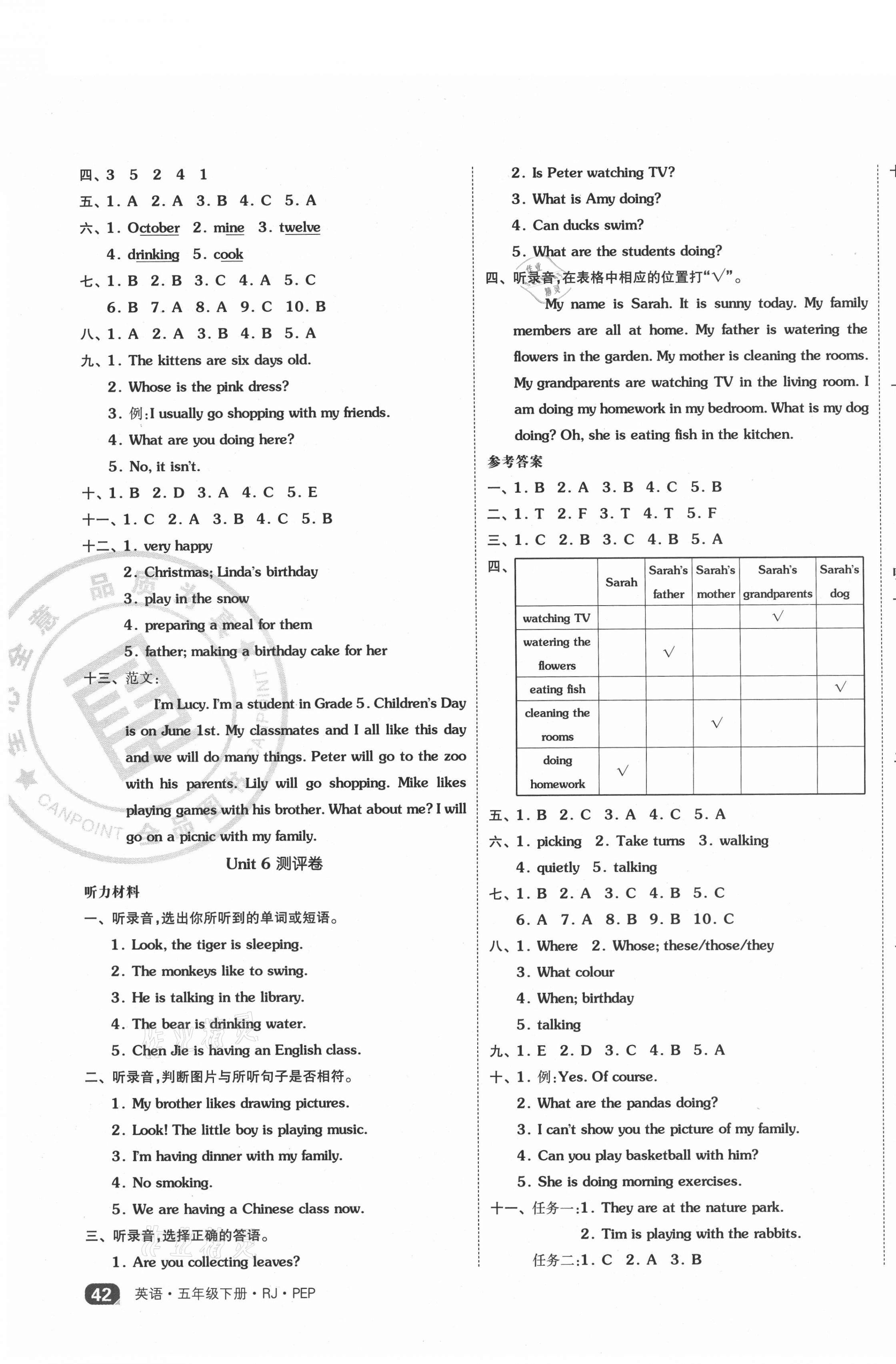 注:目前有些书本章节名称可能整理的还不是很完善,但都是按照顺序排列的,请同学们按照顺序仔细查找。练习册 2021年全品小复习五年级英语下册人教PEP版 答案主要是用来给同学们做完题方便对答案用的,请勿直接抄袭。