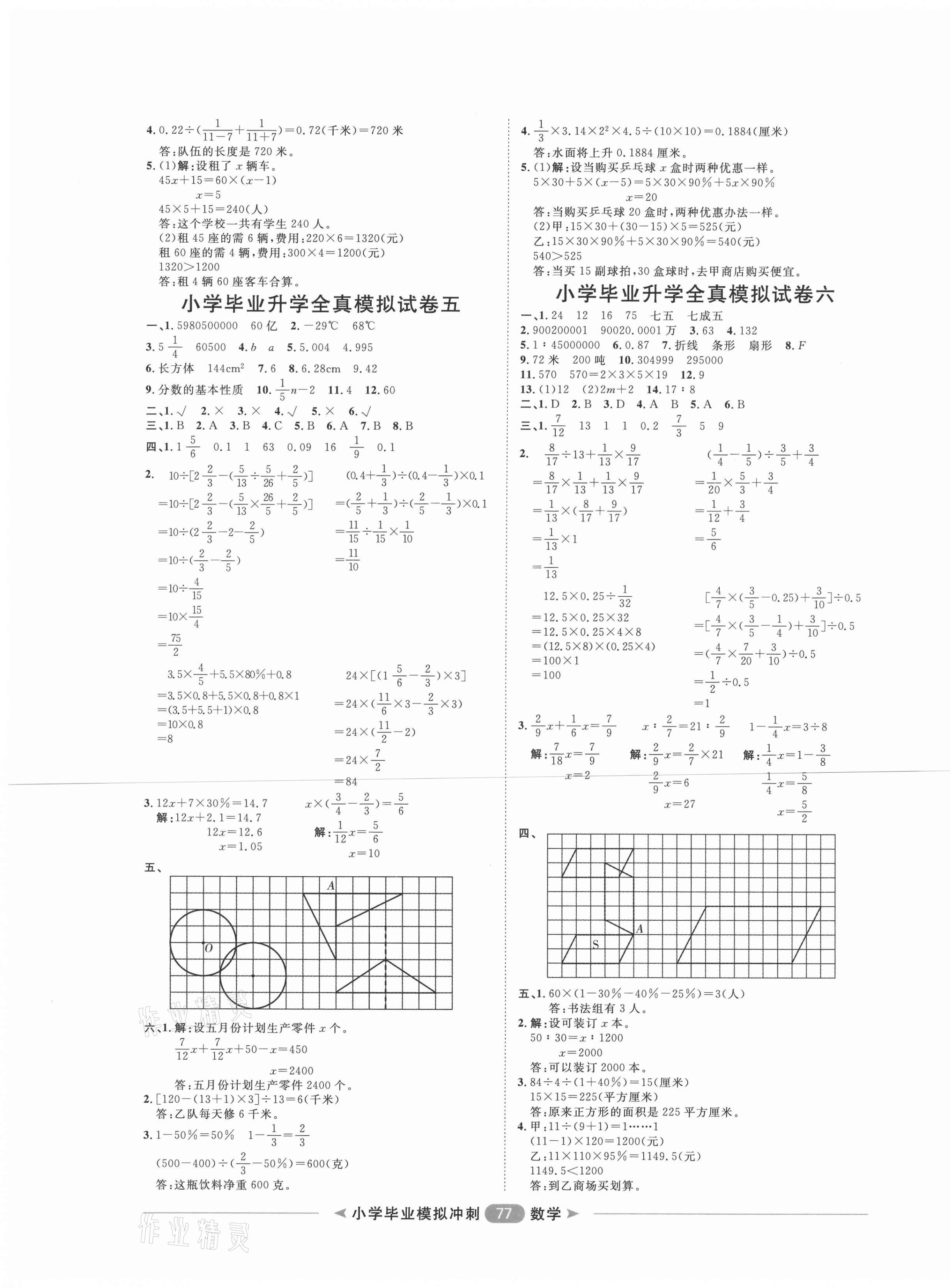 2021年阳光计划第二步小学毕业模拟冲刺数学