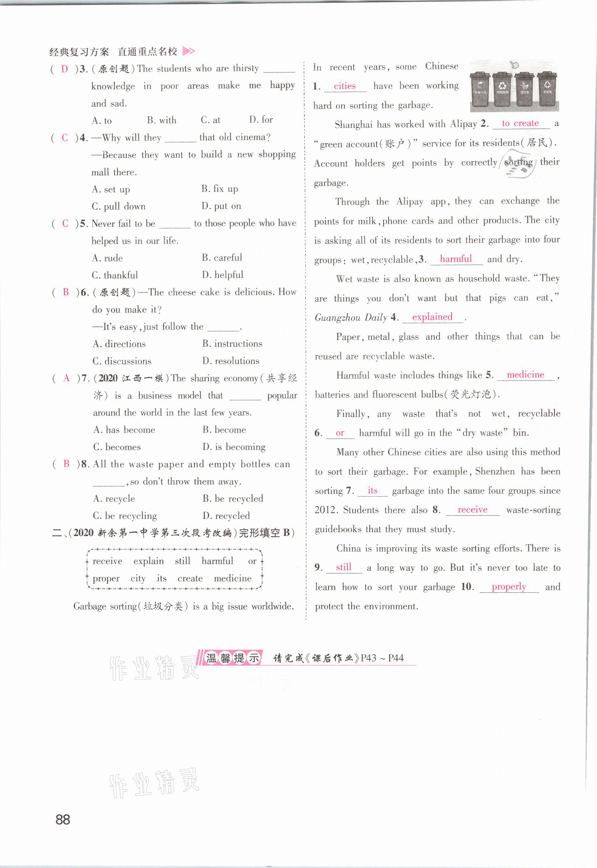 注:目前有些书本章节名称可能整理的还不是很完善,但都是按照顺序排列的,请同学们按照顺序仔细查找。练习册 2021年名师测控中考特训方案英语江西专版 答案主要是用来给同学们做完题方便对答案用的,请勿直接抄袭。