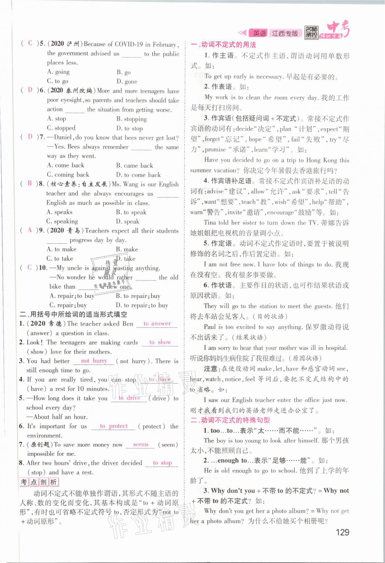 注:目前有些书本章节名称可能整理的还不是很完善,但都是按照顺序排列的,请同学们按照顺序仔细查找。练习册 2021年名师测控中考特训方案英语江西专版 答案主要是用来给同学们做完题方便对答案用的,请勿直接抄袭。