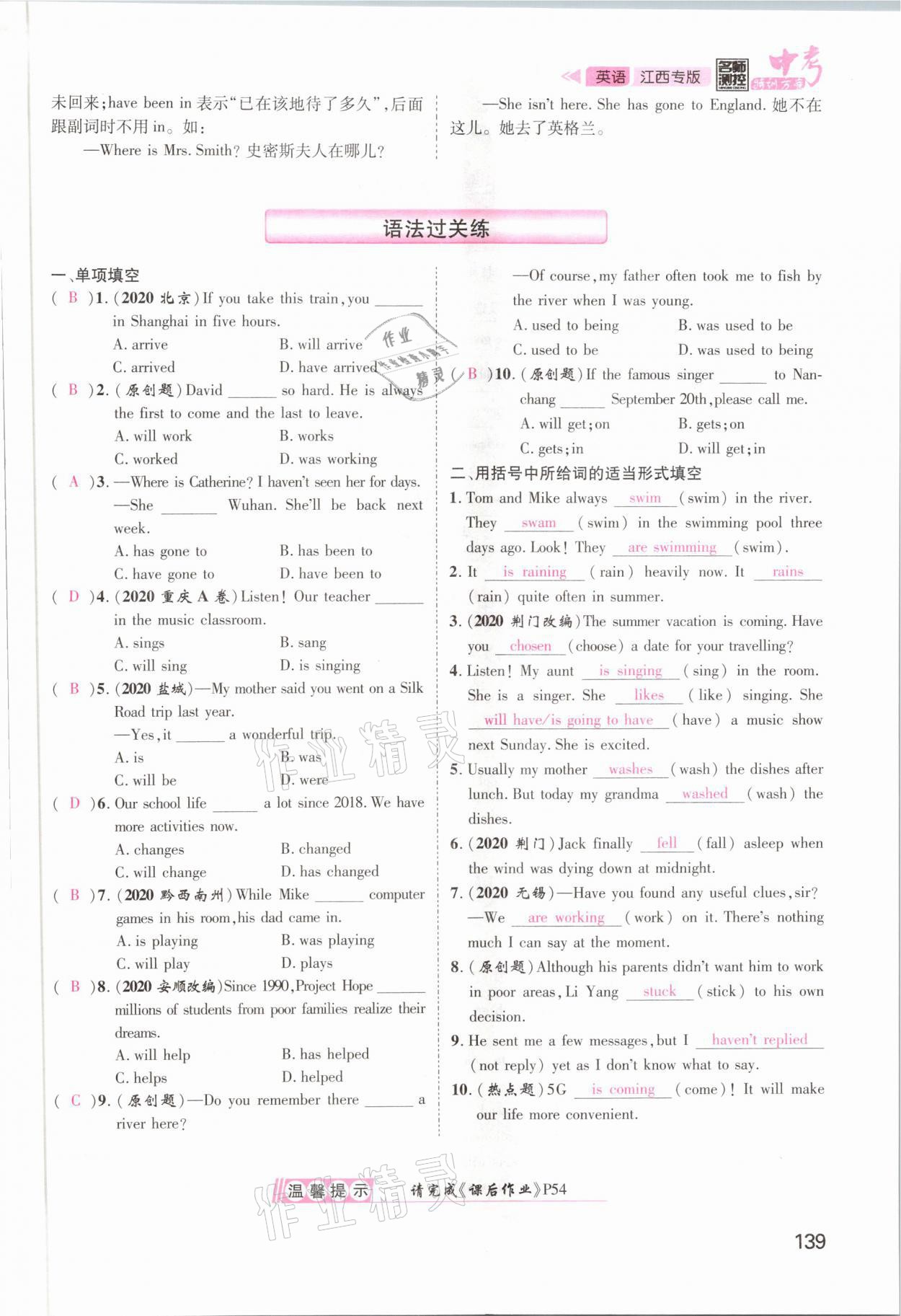 注:目前有些书本章节名称可能整理的还不是很完善,但都是按照顺序排列的,请同学们按照顺序仔细查找。练习册 2021年名师测控中考特训方案英语江西专版 答案主要是用来给同学们做完题方便对答案用的,请勿直接抄袭。