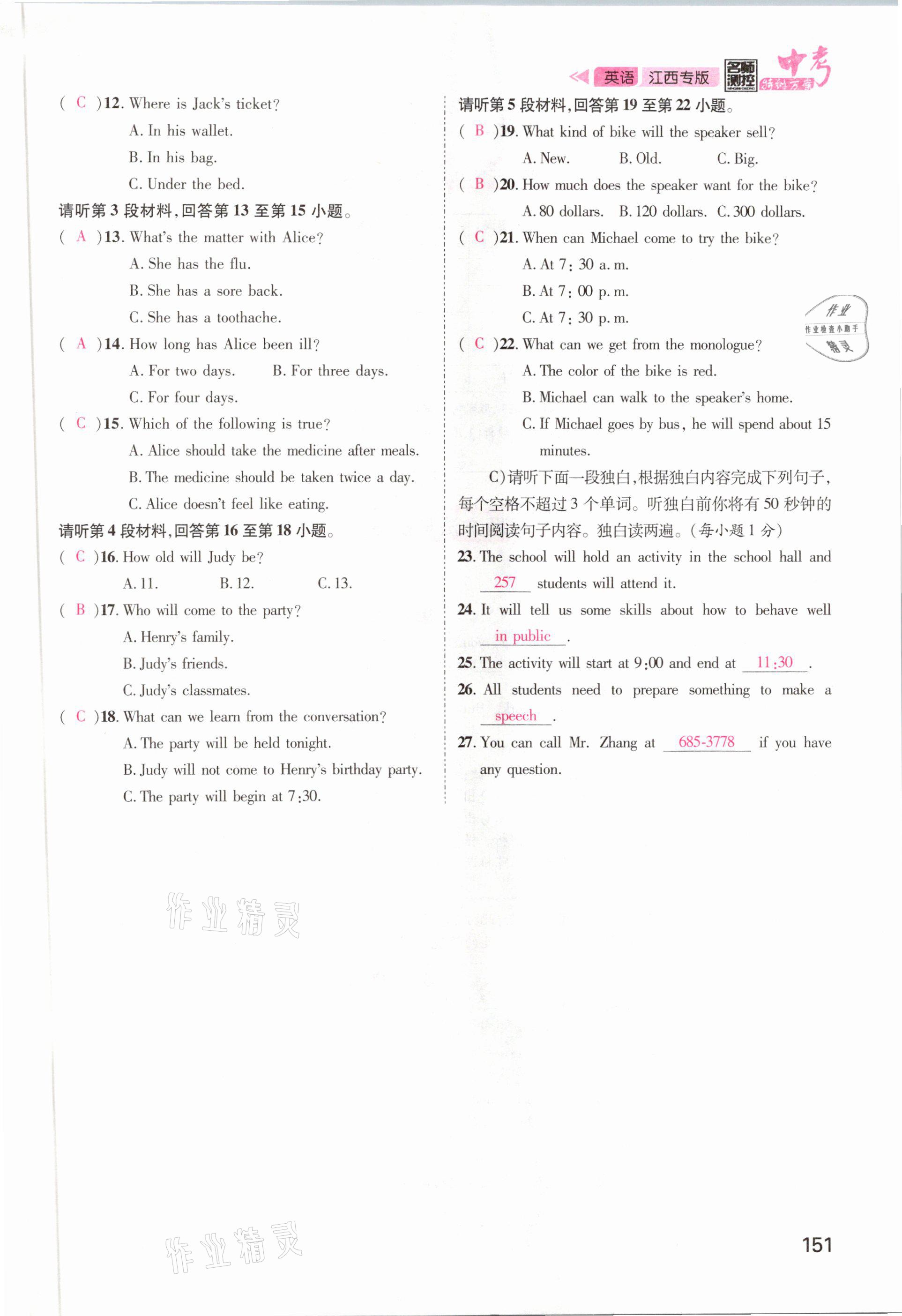 注:目前有些书本章节名称可能整理的还不是很完善,但都是按照顺序排列的,请同学们按照顺序仔细查找。练习册 2021年名师测控中考特训方案英语江西专版 答案主要是用来给同学们做完题方便对答案用的,请勿直接抄袭。