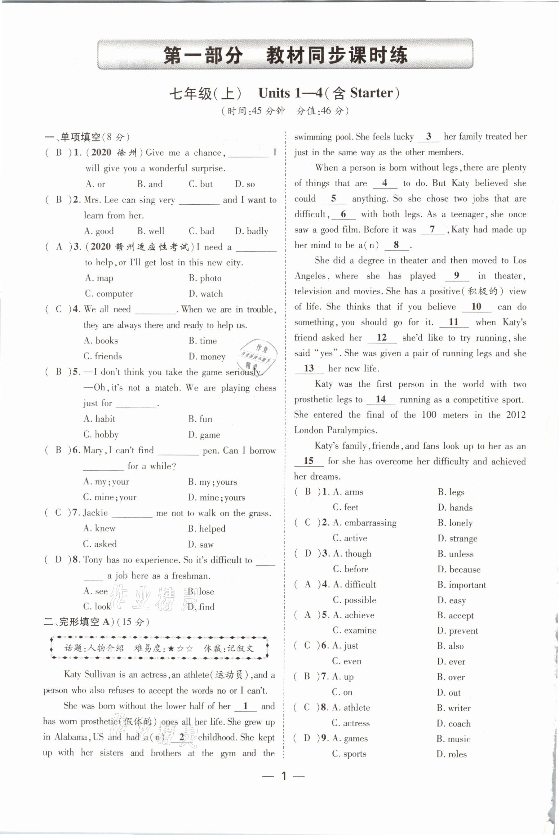 注:目前有些书本章节名称可能整理的还不是很完善,但都是按照顺序排列的,请同学们按照顺序仔细查找。练习册 2021年名师测控中考特训方案英语江西专版 答案主要是用来给同学们做完题方便对答案用的,请勿直接抄袭。