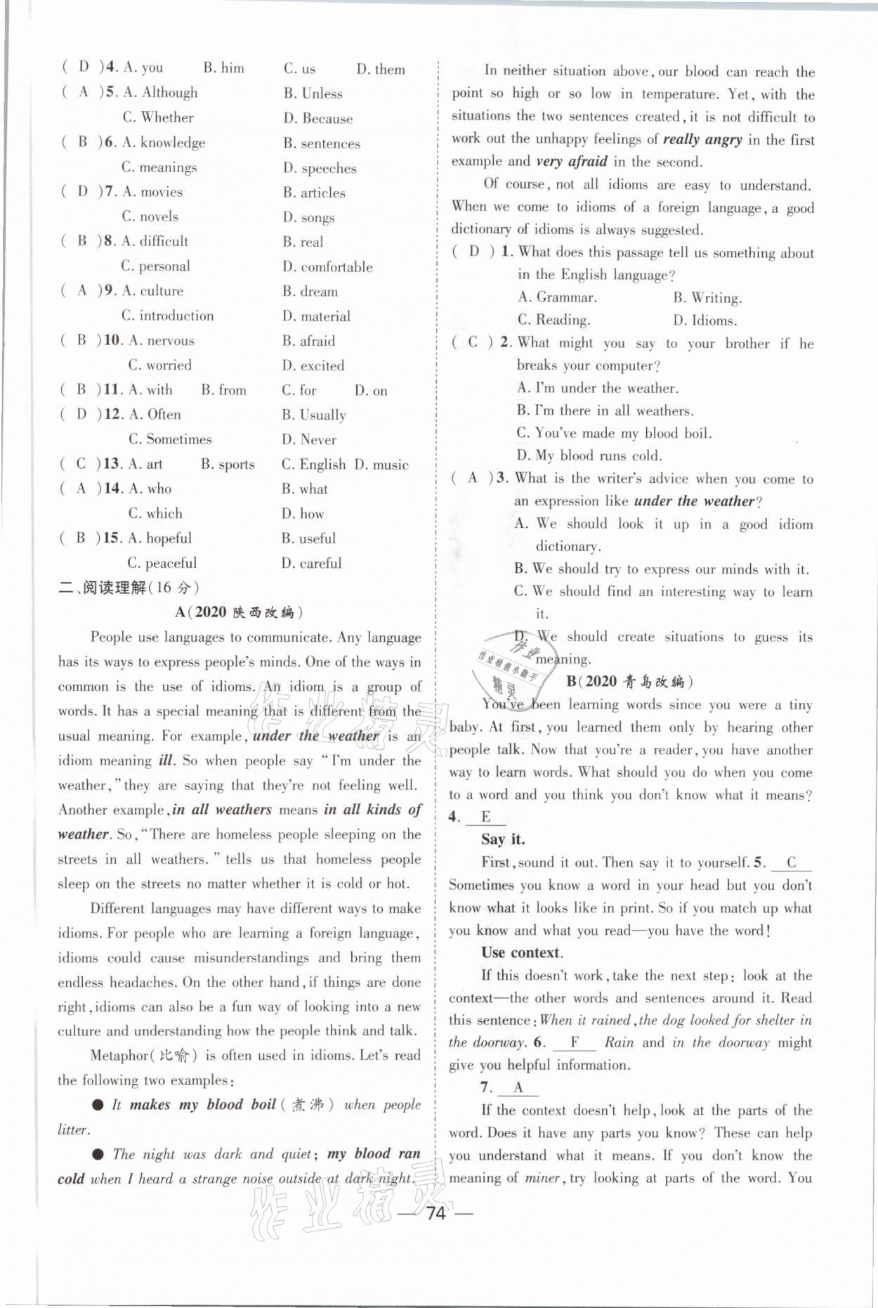 - 参考答案第74页