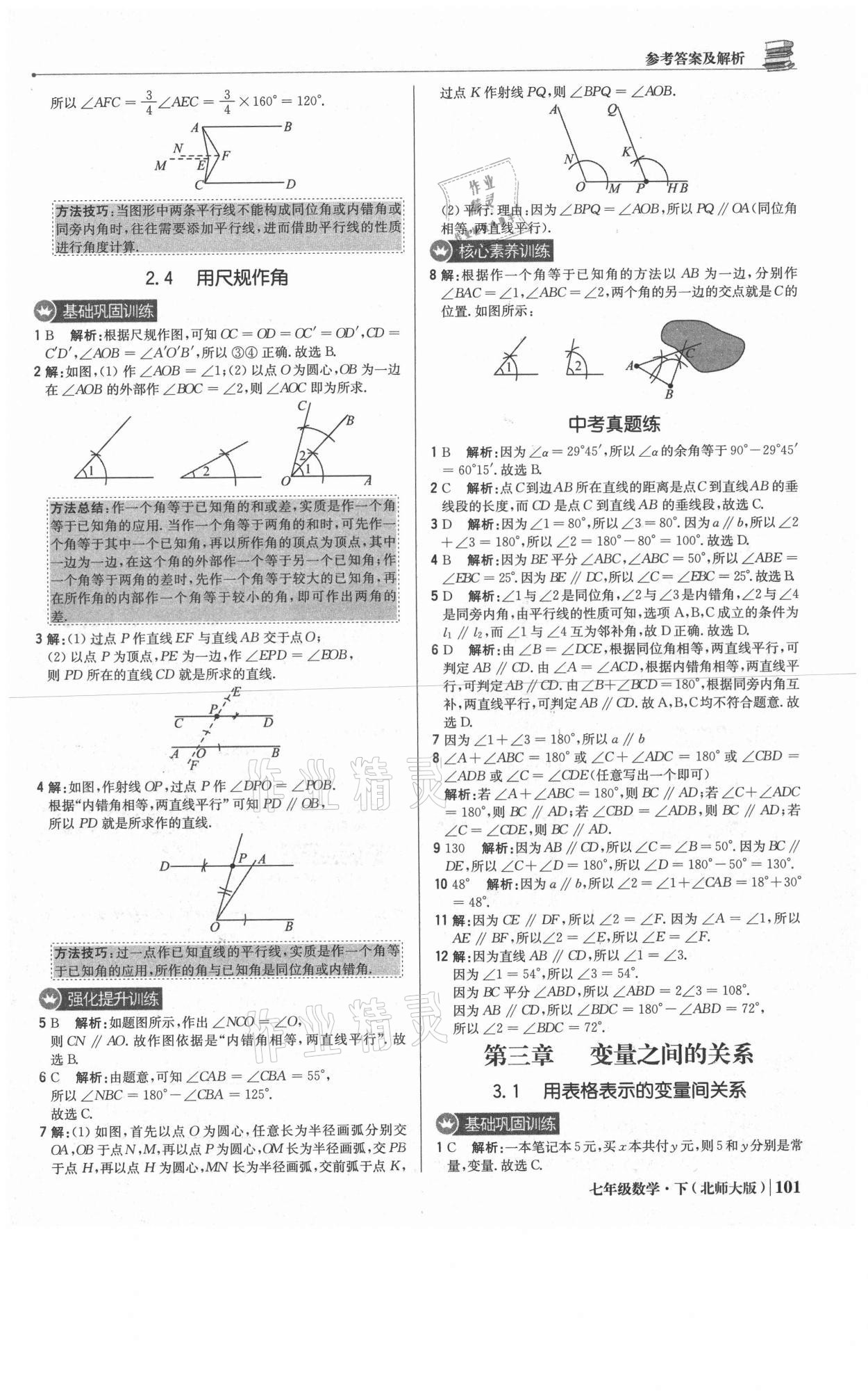 注:目前有些书本章节名称可能整理的还不是很完善,但都是按照顺序排列的,请同学们按照顺序仔细查找。练习册 2021年1加1轻巧夺冠优化训练七年级数学下册北师大版 答案主要是用来给同学们做完题方便对答案用的,请勿直接抄袭。