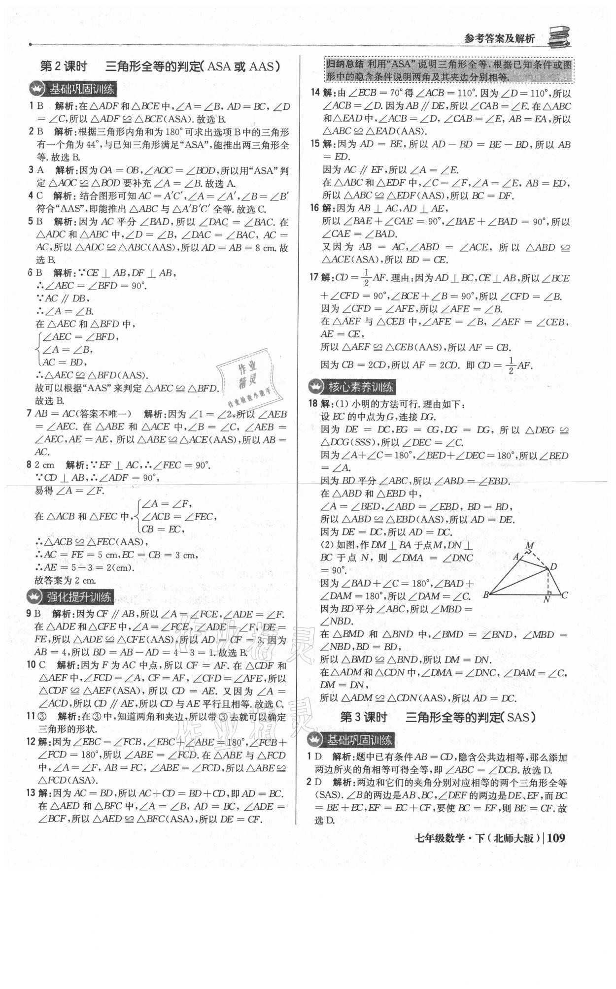 注:目前有些书本章节名称可能整理的还不是很完善,但都是按照顺序排列的,请同学们按照顺序仔细查找。练习册 2021年1加1轻巧夺冠优化训练七年级数学下册北师大版 答案主要是用来给同学们做完题方便对答案用的,请勿直接抄袭。