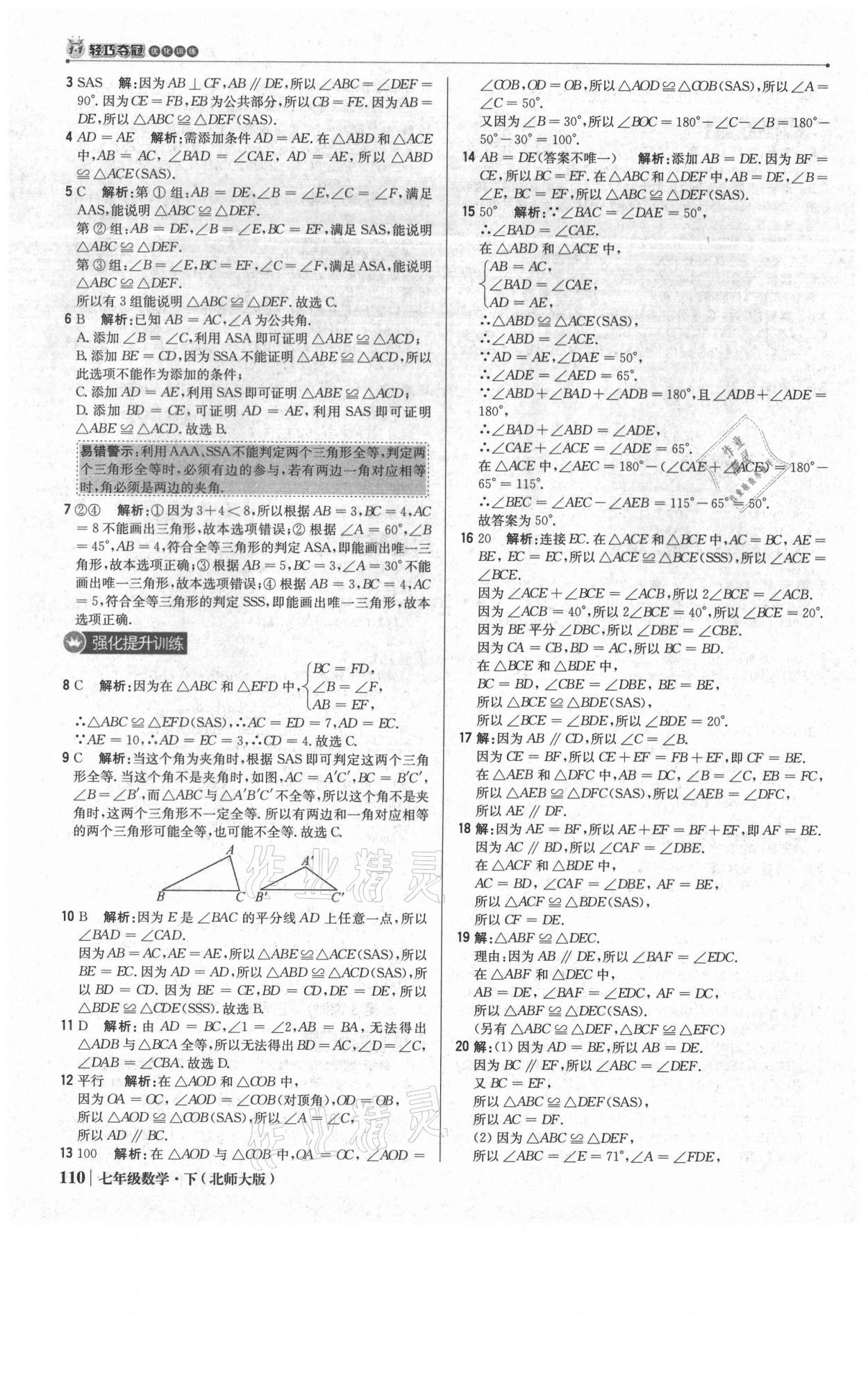 注:目前有些书本章节名称可能整理的还不是很完善,但都是按照顺序排列的,请同学们按照顺序仔细查找。练习册 2021年1加1轻巧夺冠优化训练七年级数学下册北师大版 答案主要是用来给同学们做完题方便对答案用的,请勿直接抄袭。