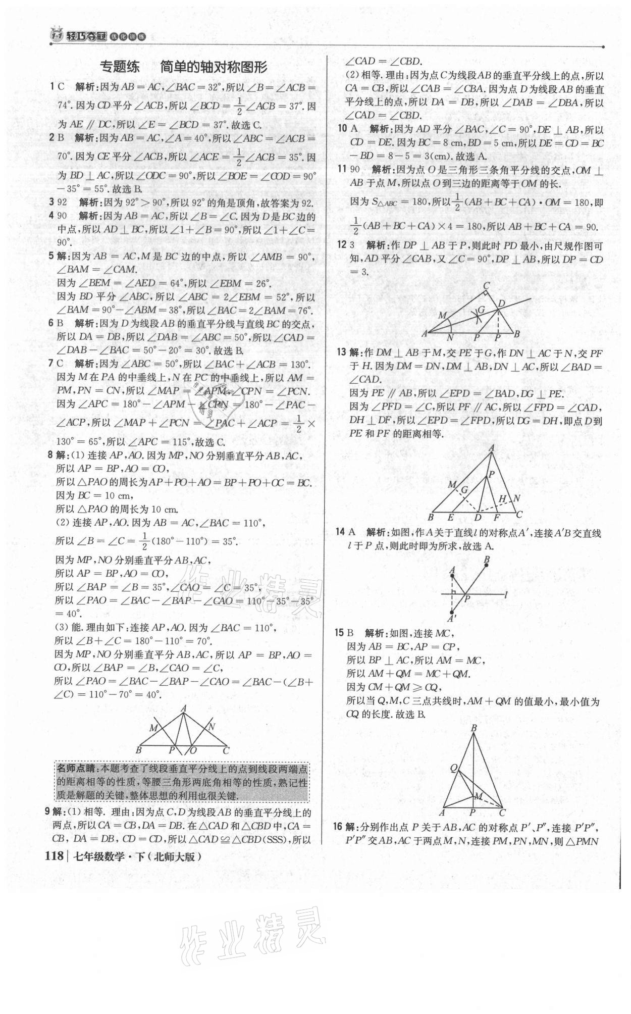 注:目前有些书本章节名称可能整理的还不是很完善,但都是按照顺序排列的,请同学们按照顺序仔细查找。练习册 2021年1加1轻巧夺冠优化训练七年级数学下册北师大版 答案主要是用来给同学们做完题方便对答案用的,请勿直接抄袭。