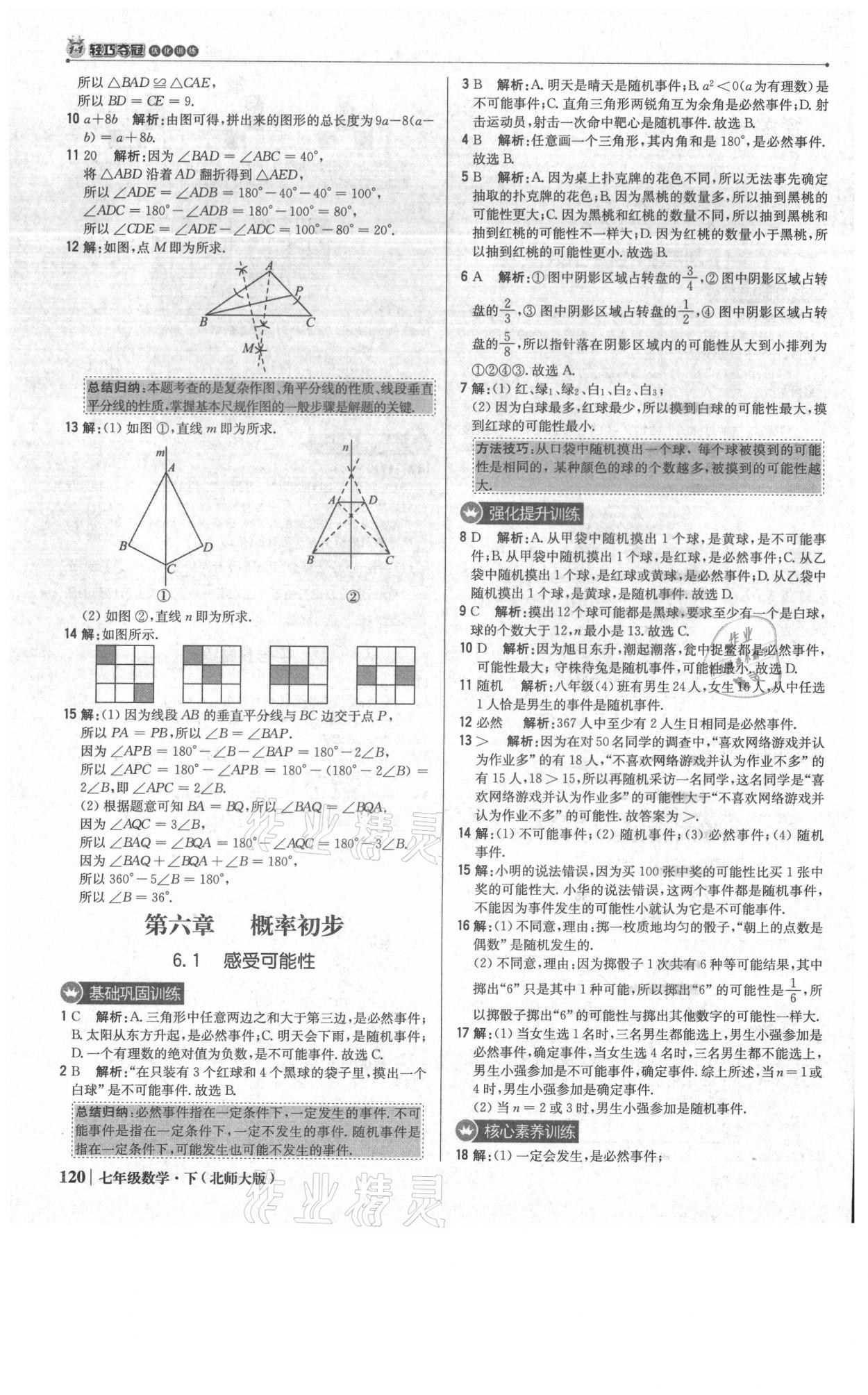 注:目前有些书本章节名称可能整理的还不是很完善,但都是按照顺序排列的,请同学们按照顺序仔细查找。练习册 2021年1加1轻巧夺冠优化训练七年级数学下册北师大版 答案主要是用来给同学们做完题方便对答案用的,请勿直接抄袭。