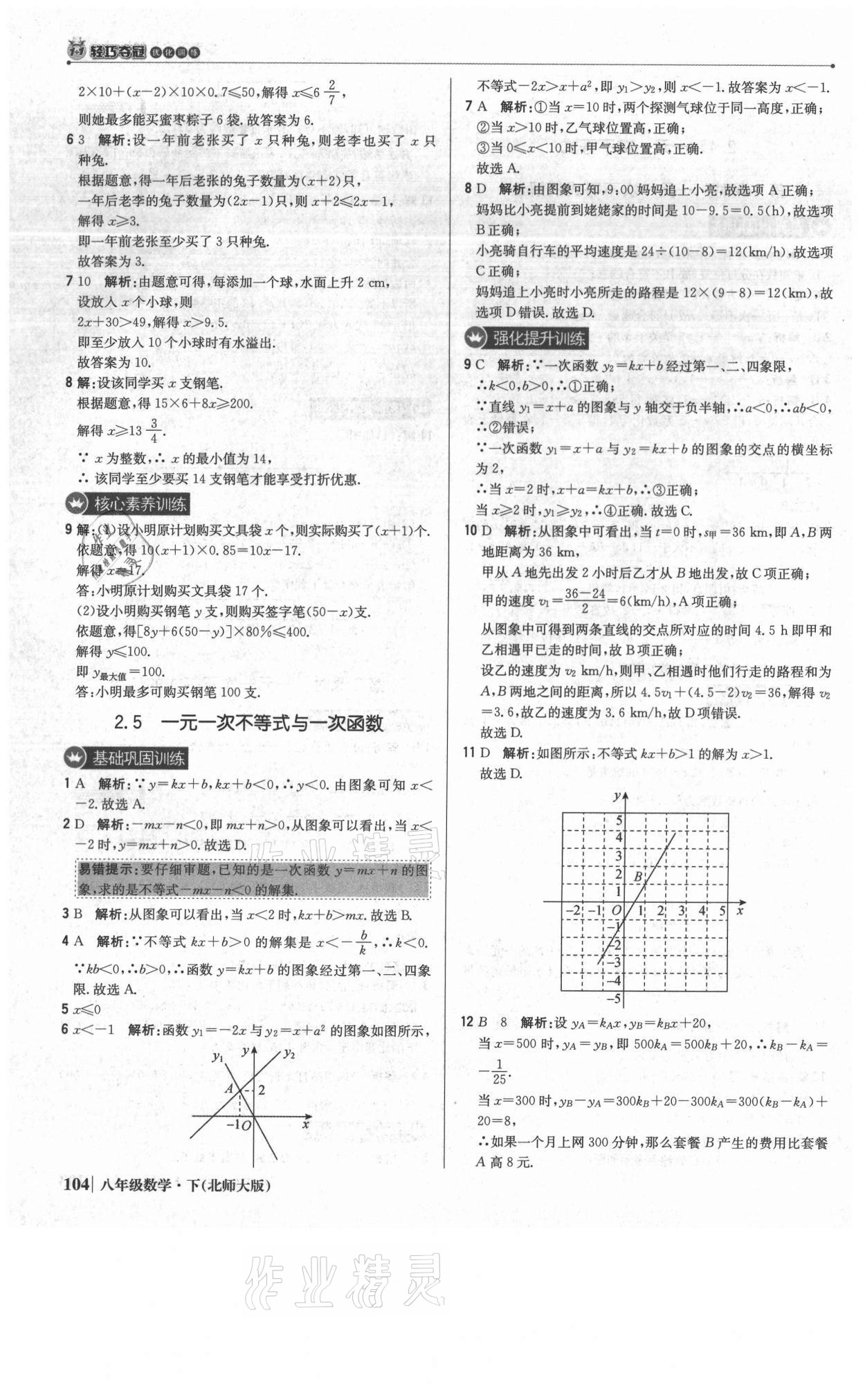 注:目前有些书本章节名称可能整理的还不是很完善,但都是按照顺序排列的,请同学们按照顺序仔细查找。练习册 2021年1加1轻巧夺冠优化训练八年级数学下册北师大版 答案主要是用来给同学们做完题方便对答案用的,请勿直接抄袭。