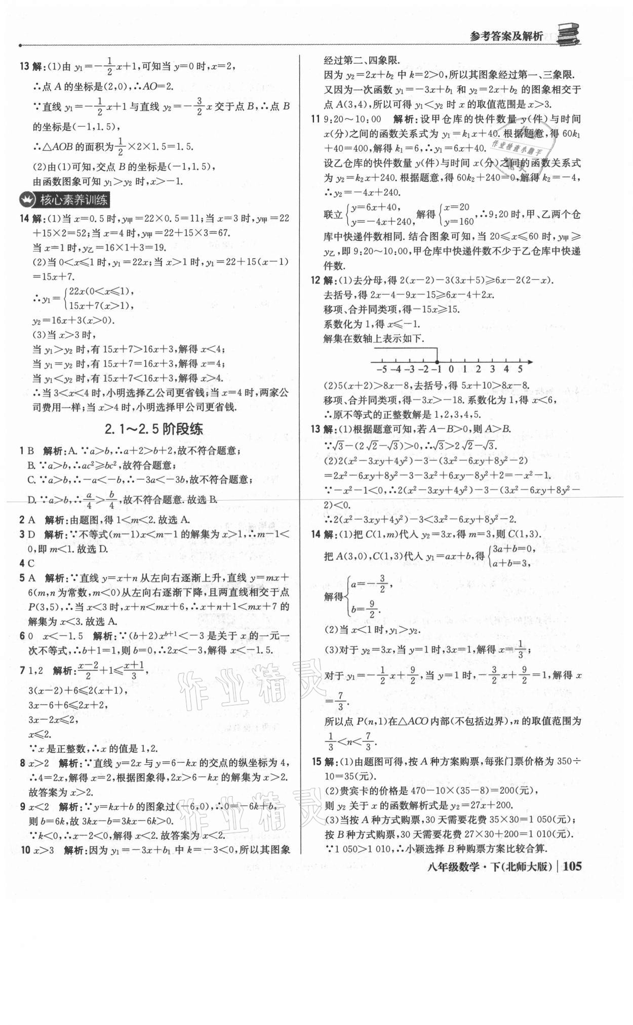 注:目前有些书本章节名称可能整理的还不是很完善,但都是按照顺序排列的,请同学们按照顺序仔细查找。练习册 2021年1加1轻巧夺冠优化训练八年级数学下册北师大版 答案主要是用来给同学们做完题方便对答案用的,请勿直接抄袭。