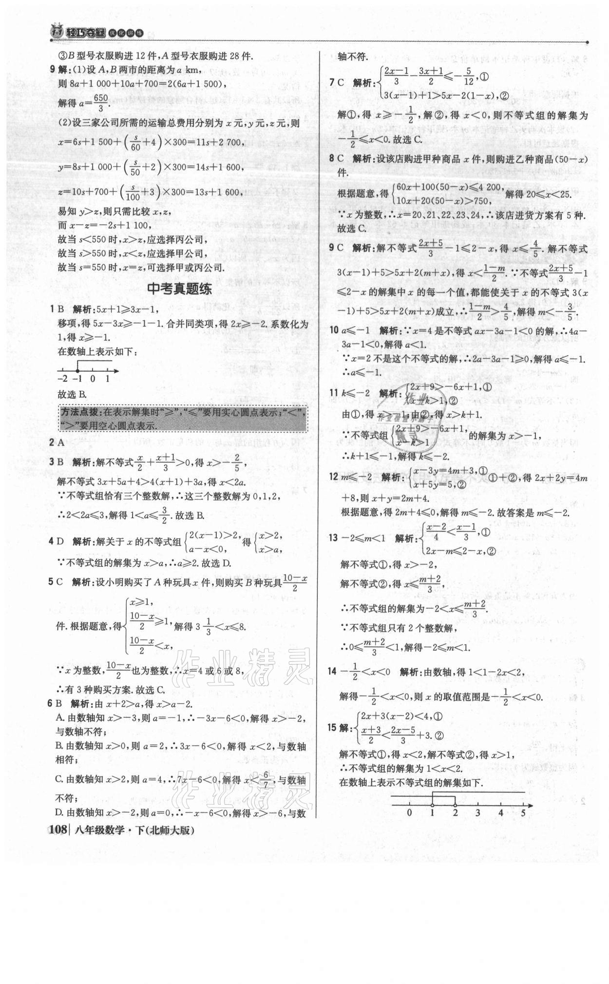 注:目前有些书本章节名称可能整理的还不是很完善,但都是按照顺序排列的,请同学们按照顺序仔细查找。练习册 2021年1加1轻巧夺冠优化训练八年级数学下册北师大版 答案主要是用来给同学们做完题方便对答案用的,请勿直接抄袭。
