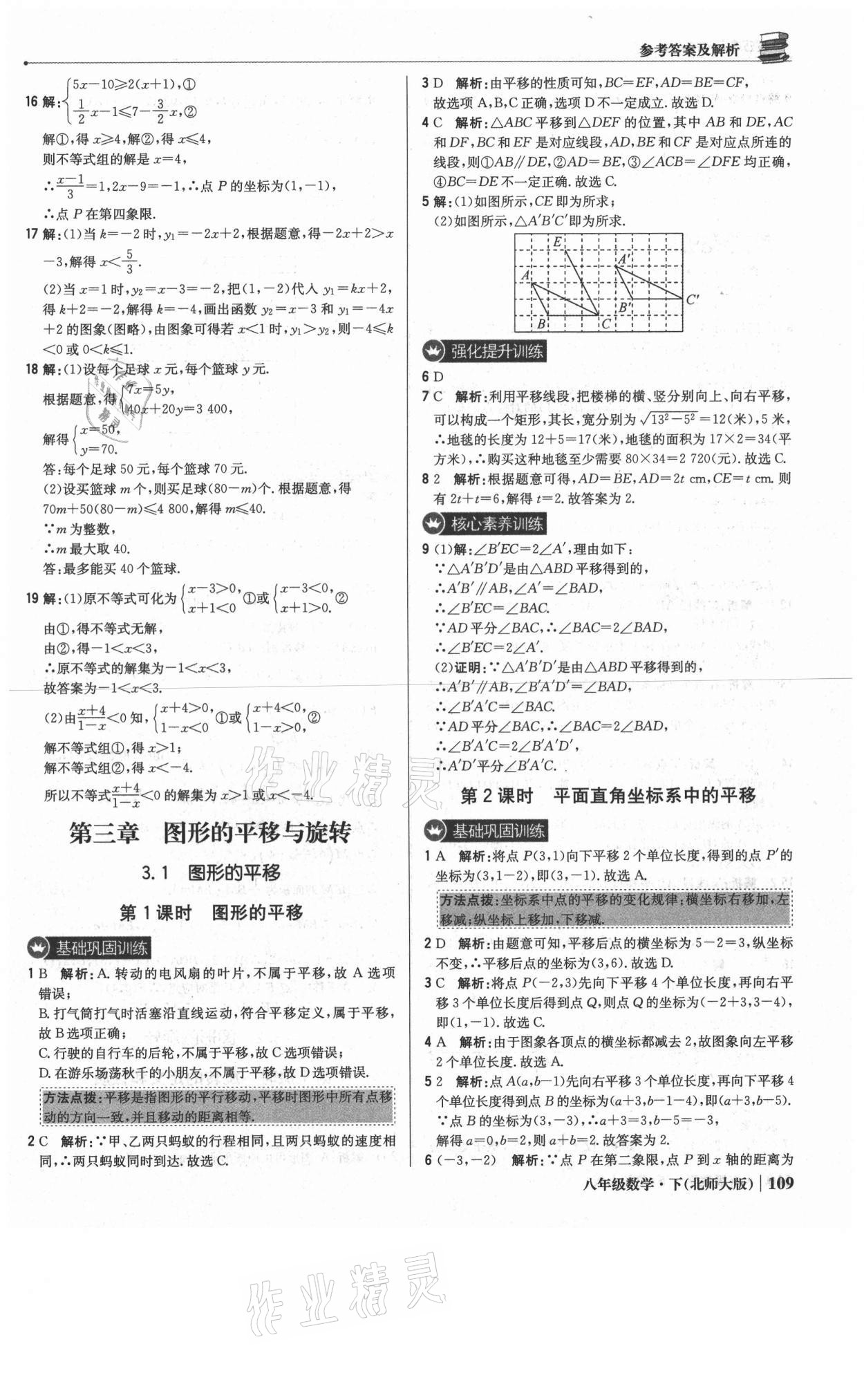 注:目前有些书本章节名称可能整理的还不是很完善,但都是按照顺序排列的,请同学们按照顺序仔细查找。练习册 2021年1加1轻巧夺冠优化训练八年级数学下册北师大版 答案主要是用来给同学们做完题方便对答案用的,请勿直接抄袭。