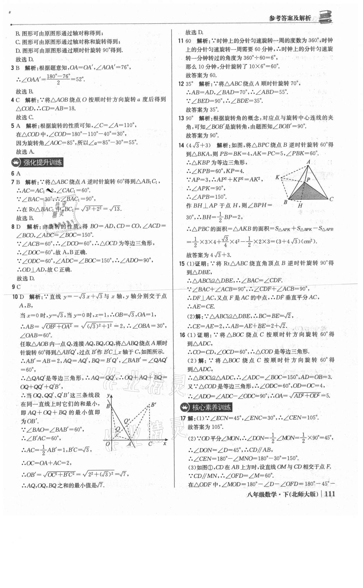 注:目前有些书本章节名称可能整理的还不是很完善,但都是按照顺序排列的,请同学们按照顺序仔细查找。练习册 2021年1加1轻巧夺冠优化训练八年级数学下册北师大版 答案主要是用来给同学们做完题方便对答案用的,请勿直接抄袭。