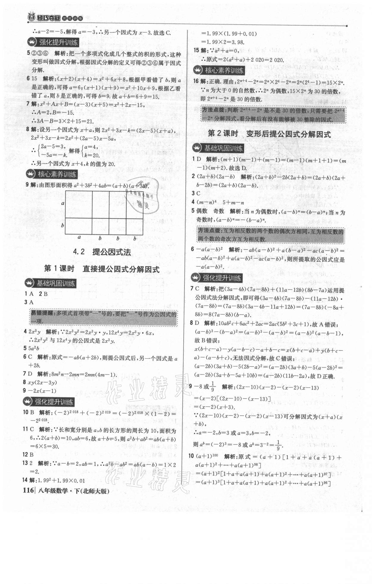 注:目前有些书本章节名称可能整理的还不是很完善,但都是按照顺序排列的,请同学们按照顺序仔细查找。练习册 2021年1加1轻巧夺冠优化训练八年级数学下册北师大版 答案主要是用来给同学们做完题方便对答案用的,请勿直接抄袭。
