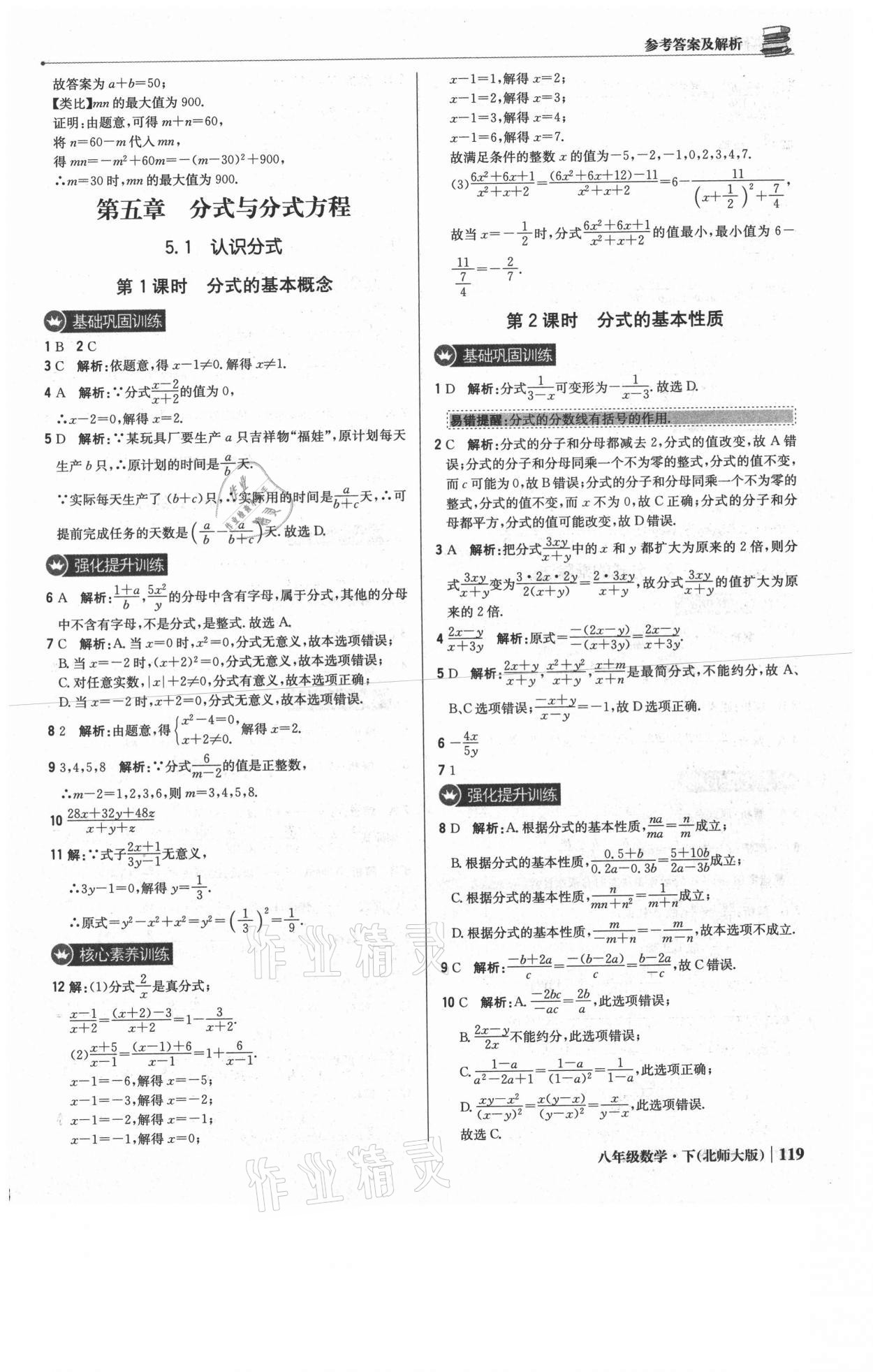 注:目前有些书本章节名称可能整理的还不是很完善,但都是按照顺序排列的,请同学们按照顺序仔细查找。练习册 2021年1加1轻巧夺冠优化训练八年级数学下册北师大版 答案主要是用来给同学们做完题方便对答案用的,请勿直接抄袭。