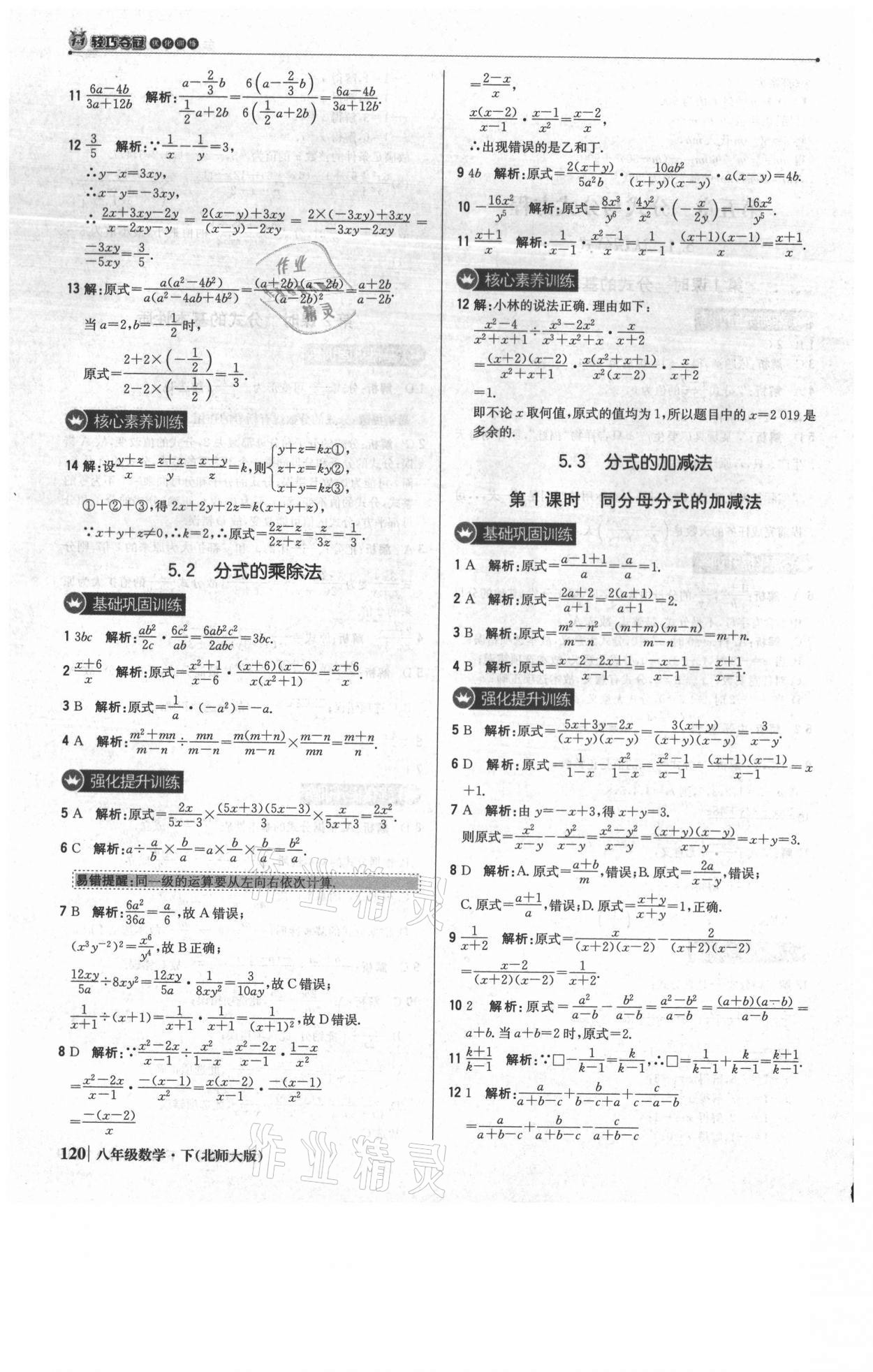 注:目前有些书本章节名称可能整理的还不是很完善,但都是按照顺序排列的,请同学们按照顺序仔细查找。练习册 2021年1加1轻巧夺冠优化训练八年级数学下册北师大版 答案主要是用来给同学们做完题方便对答案用的,请勿直接抄袭。
