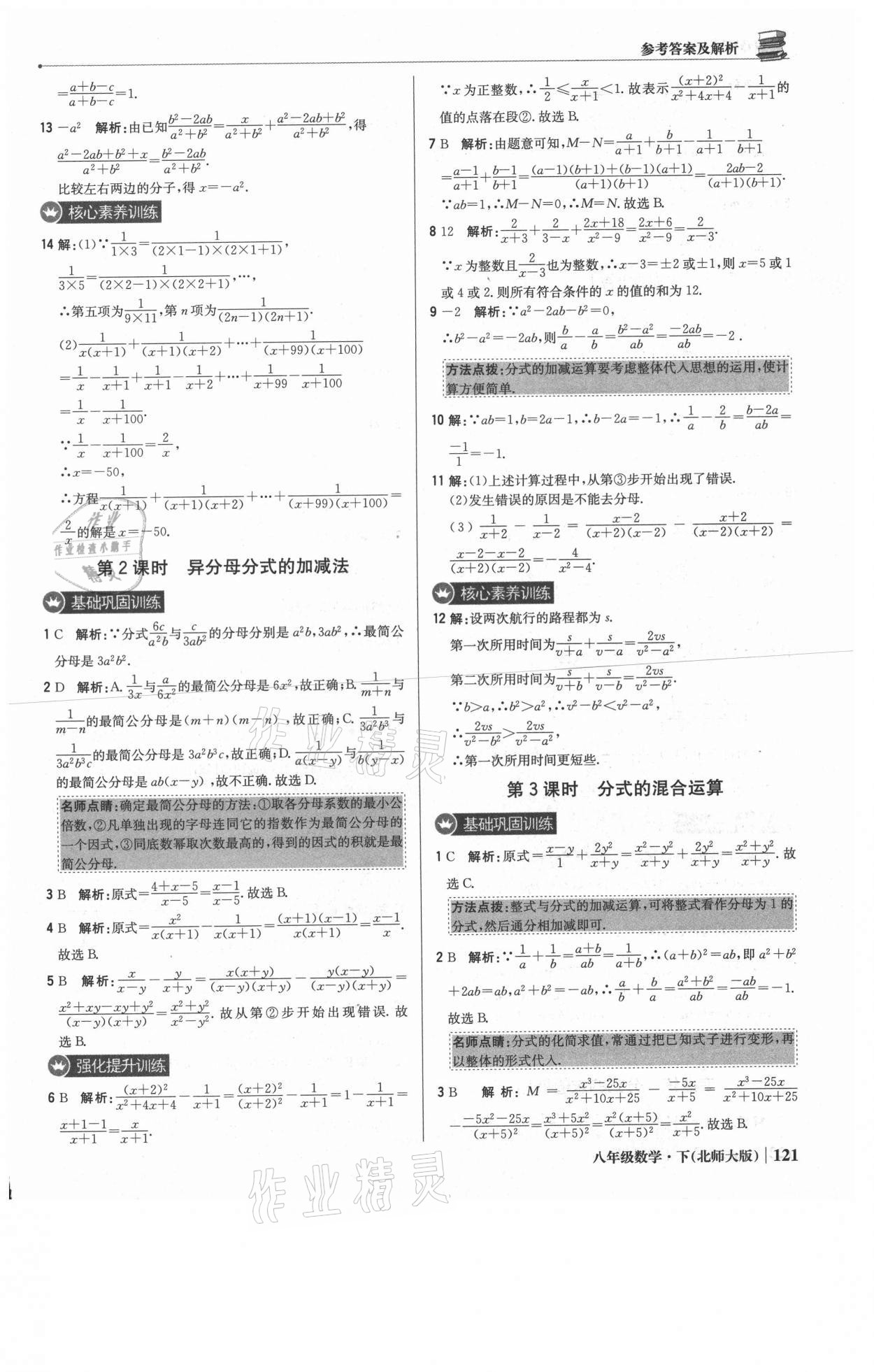 注:目前有些书本章节名称可能整理的还不是很完善,但都是按照顺序排列的,请同学们按照顺序仔细查找。练习册 2021年1加1轻巧夺冠优化训练八年级数学下册北师大版 答案主要是用来给同学们做完题方便对答案用的,请勿直接抄袭。