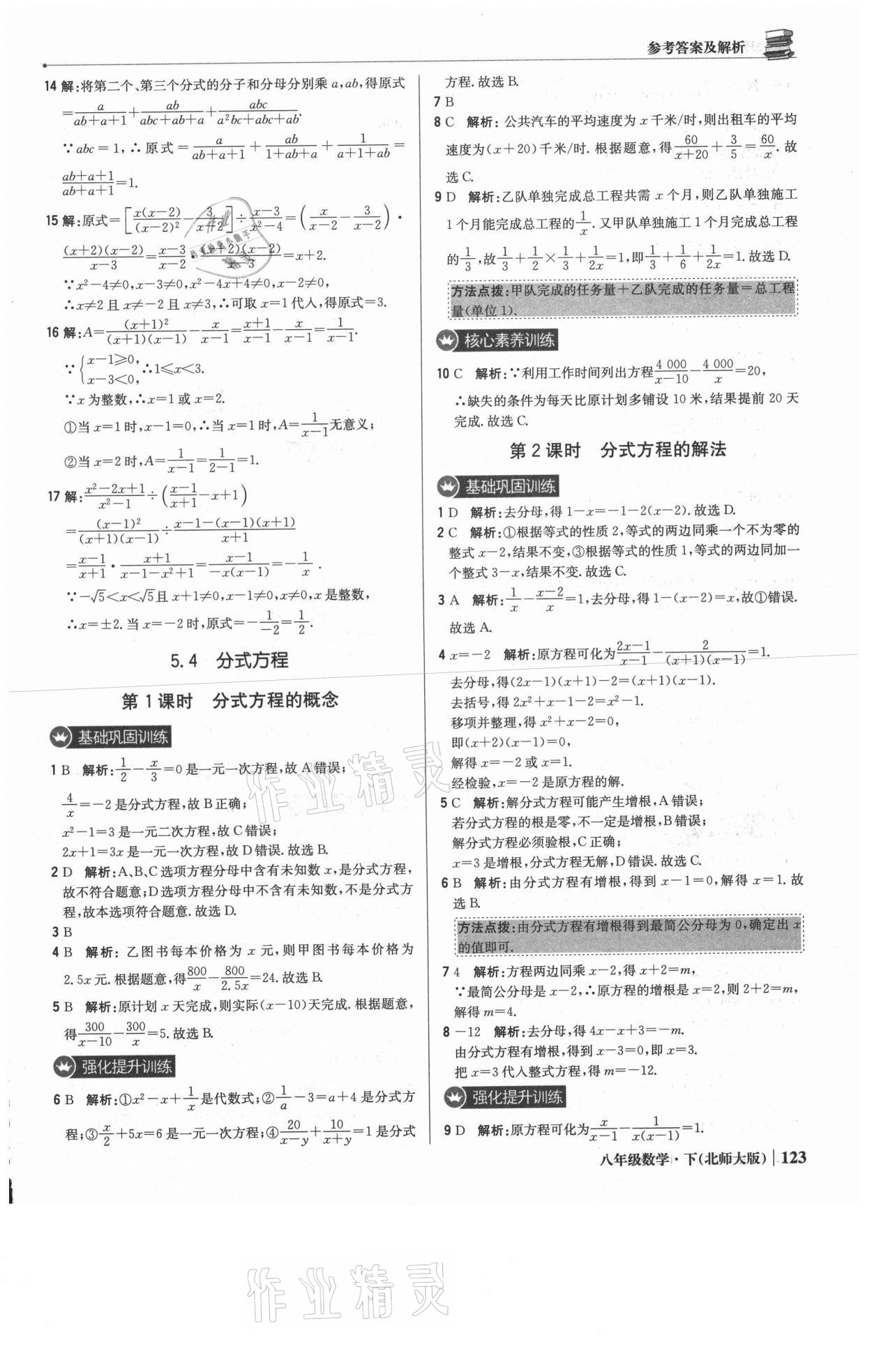 注:目前有些书本章节名称可能整理的还不是很完善,但都是按照顺序排列的,请同学们按照顺序仔细查找。练习册 2021年1加1轻巧夺冠优化训练八年级数学下册北师大版 答案主要是用来给同学们做完题方便对答案用的,请勿直接抄袭。