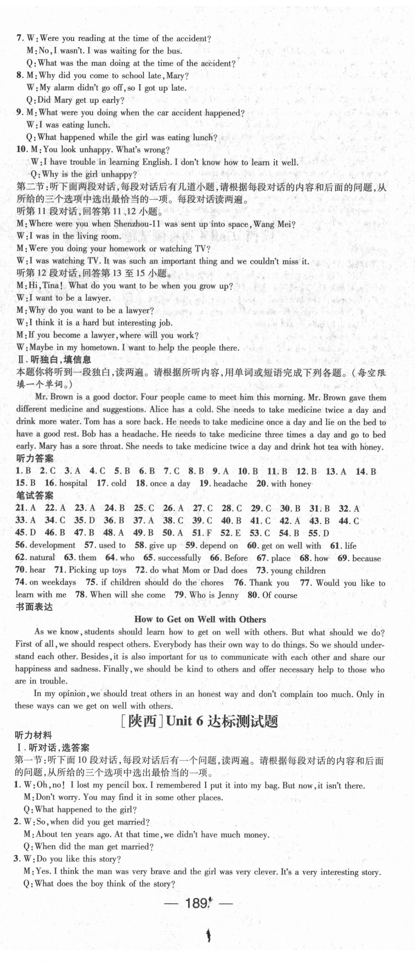 注:目前有些书本章节名称可能整理的还不是很完善,但都是按照顺序排列的,请同学们按照顺序仔细查找。练习册 2021年名师测控八年级英语下册人教版陕西专版 答案主要是用来给同学们做完题方便对答案用的,请勿直接抄袭。