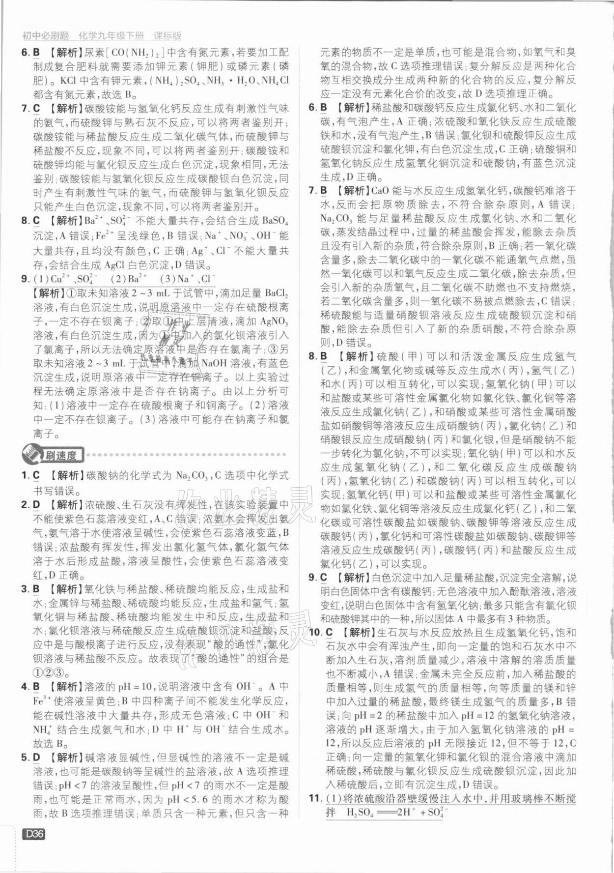 注:目前有些书本章节名称可能整理的还不是很完善,但都是按照顺序排列的,请同学们按照顺序仔细查找。练习册 2021年初中必刷题九年级化学下册科粤版 答案主要是用来给同学们做完题方便对答案用的,请勿直接抄袭。