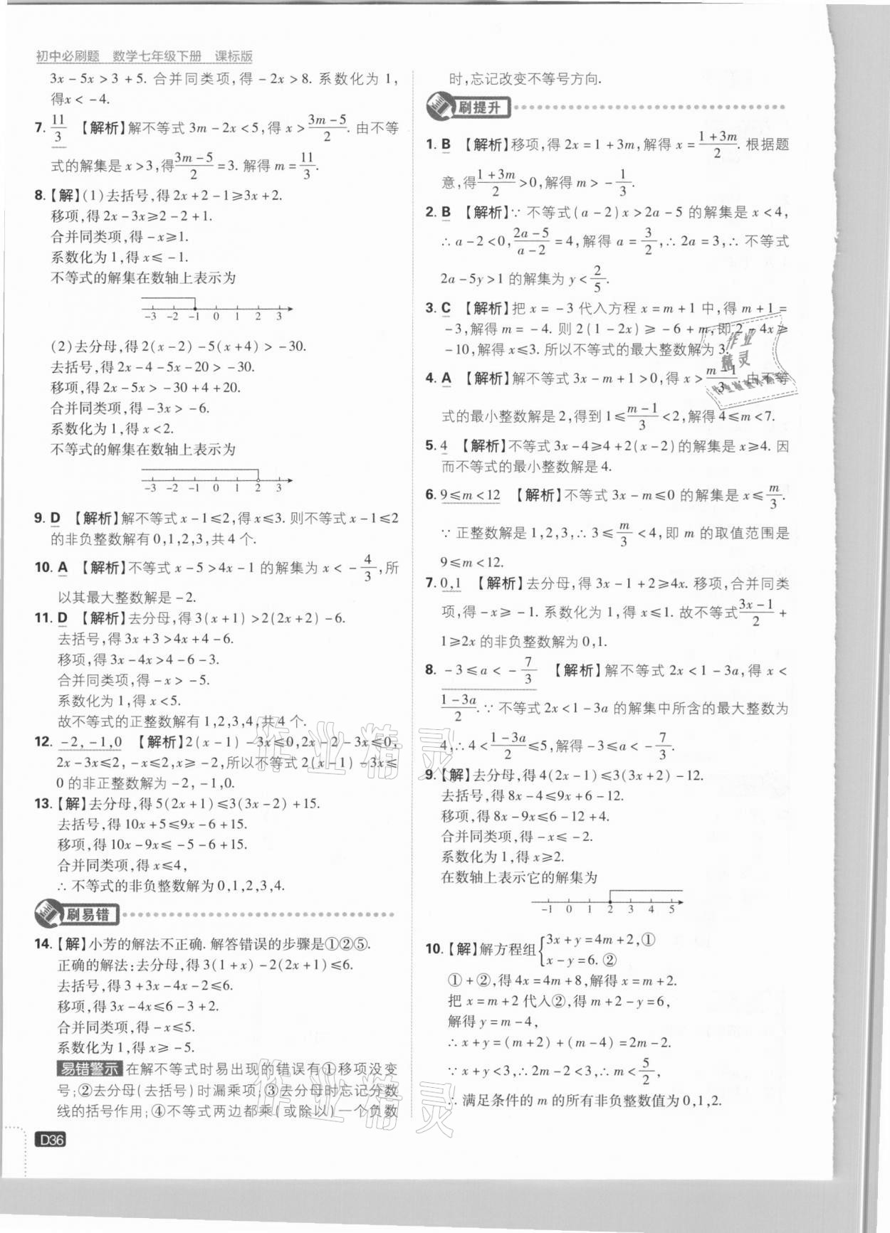 注:目前有些书本章节名称可能整理的还不是很完善,但都是按照顺序排列的,请同学们按照顺序仔细查找。练习册 2021年初中必刷题七年级数学下册冀教版 答案主要是用来给同学们做完题方便对答案用的,请勿直接抄袭。