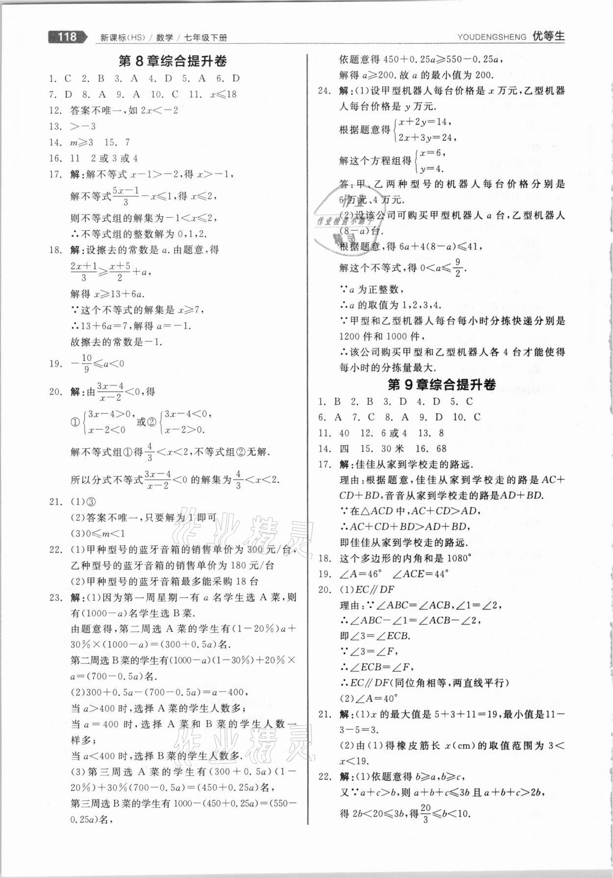 注:目前有些书本章节名称可能整理的还不是很完善,但都是按照顺序排列的,请同学们按照顺序仔细查找。练习册 2021年练就优等生七年级数学下册华师大版 答案主要是用来给同学们做完题方便对答案用的,请勿直接抄袭。