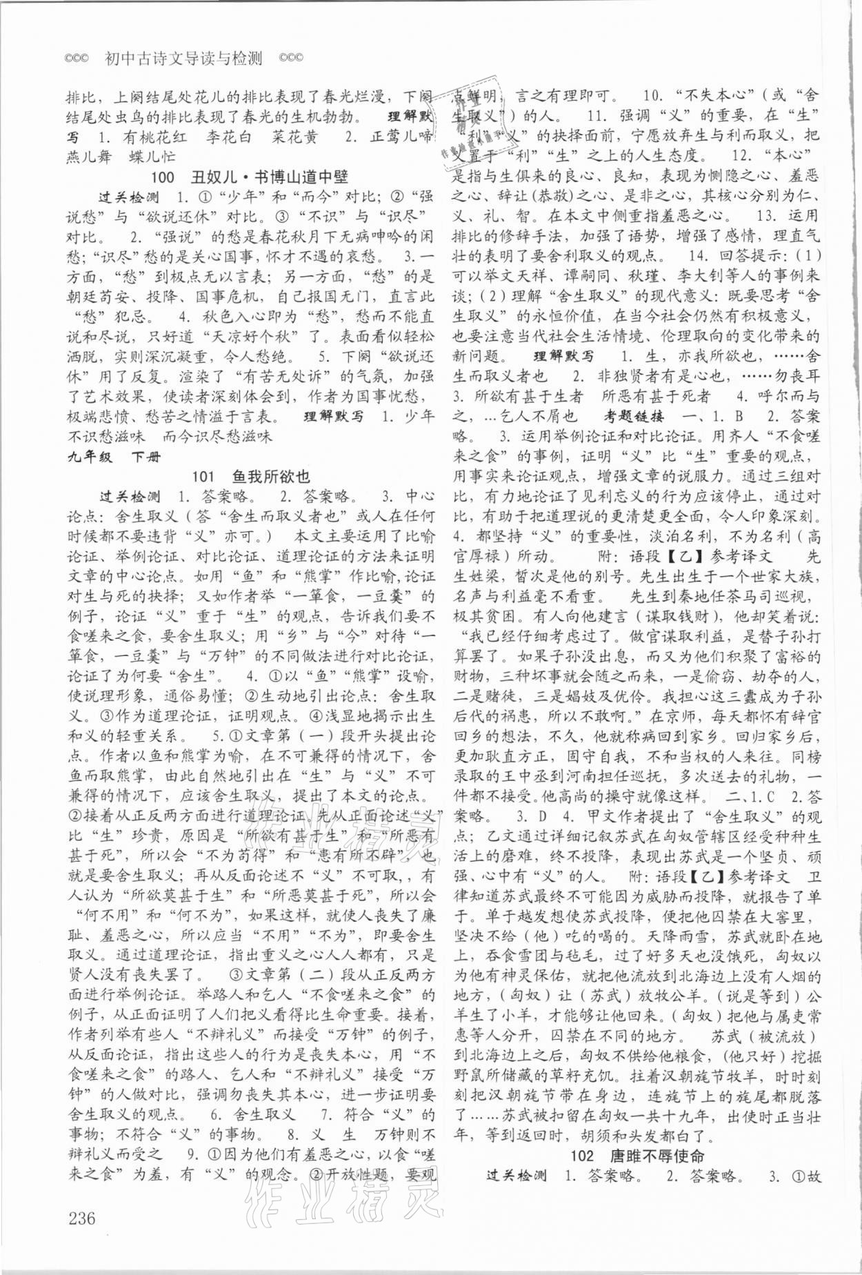 2021年初中古诗文导读与检测语文中考版