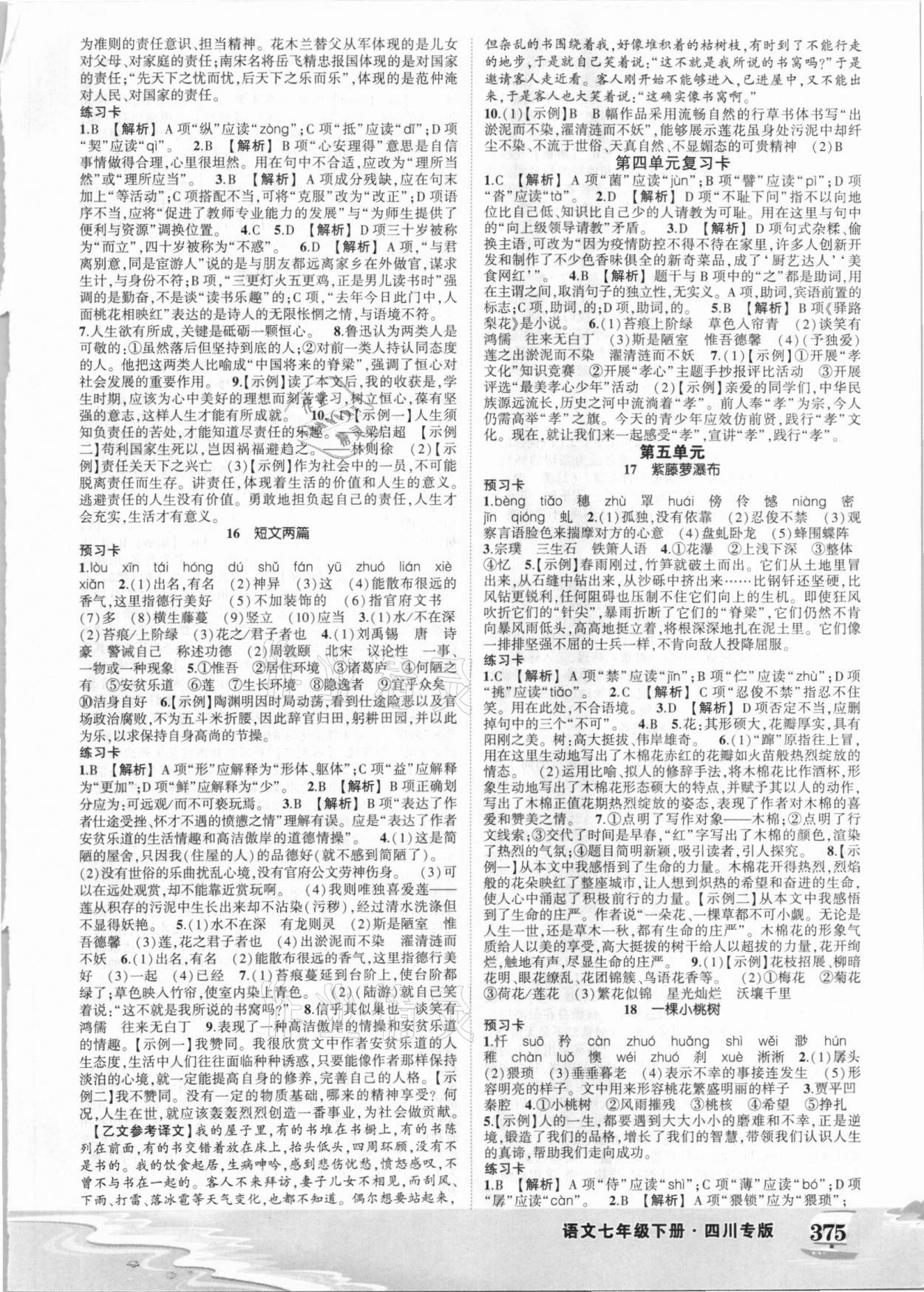 2021年黄冈状元成才路状元大课堂七年级语文下册人教版四川专版