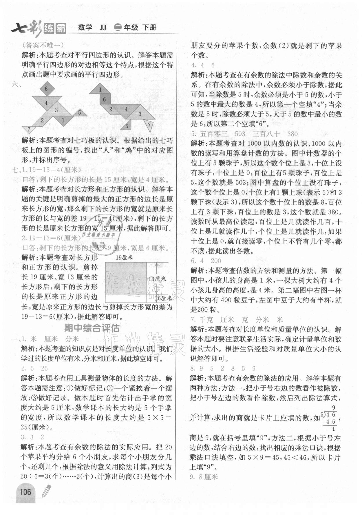 注:目前有些书本章节名称可能整理的还不是很完善,但都是按照顺序排列的,请同学们按照顺序仔细查找。练习册 2021年七彩练霸二年级数学下册冀教版 答案主要是用来给同学们做完题方便对答案用的,请勿直接抄袭。