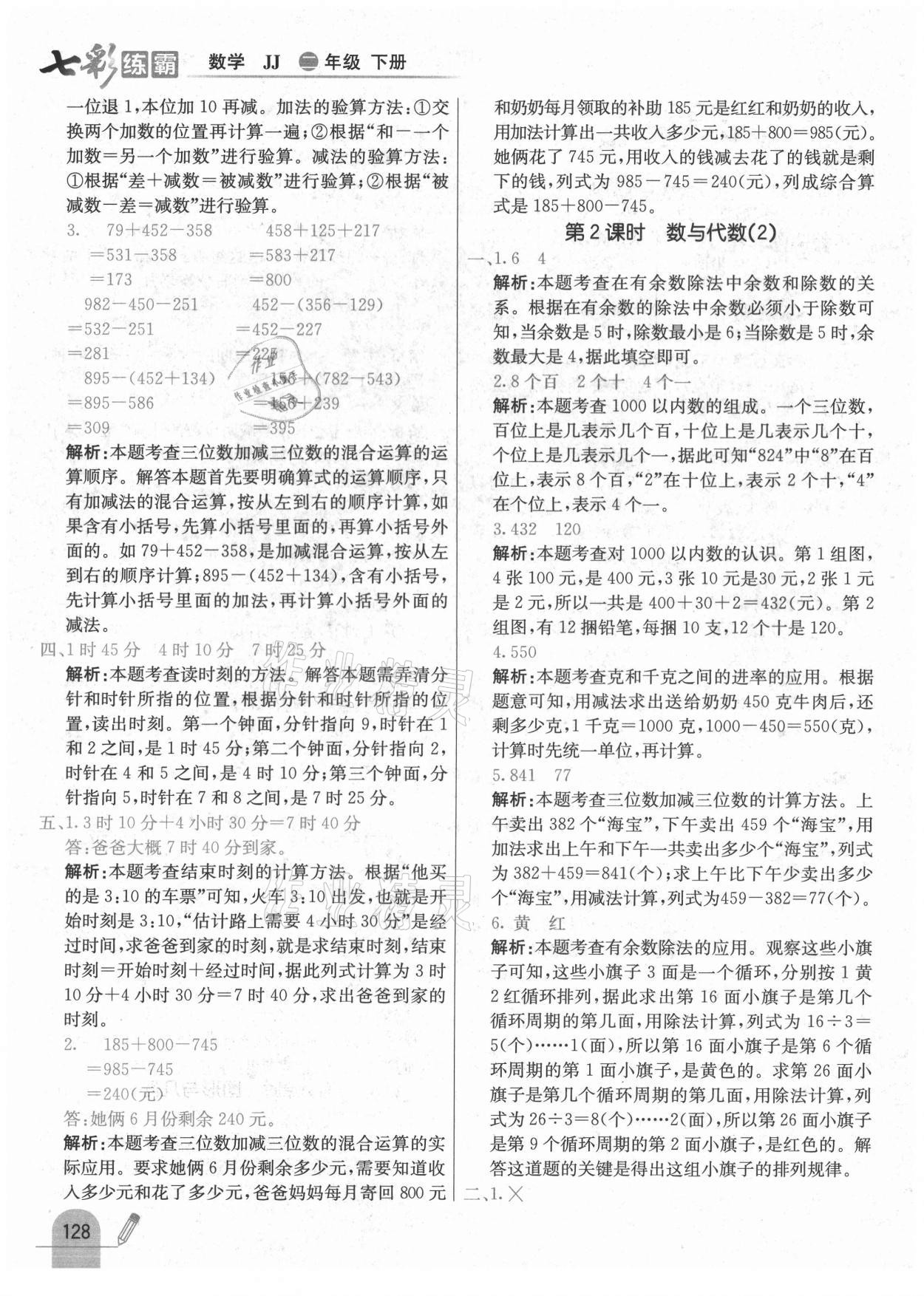注:目前有些书本章节名称可能整理的还不是很完善,但都是按照顺序排列的,请同学们按照顺序仔细查找。练习册 2021年七彩练霸二年级数学下册冀教版 答案主要是用来给同学们做完题方便对答案用的,请勿直接抄袭。