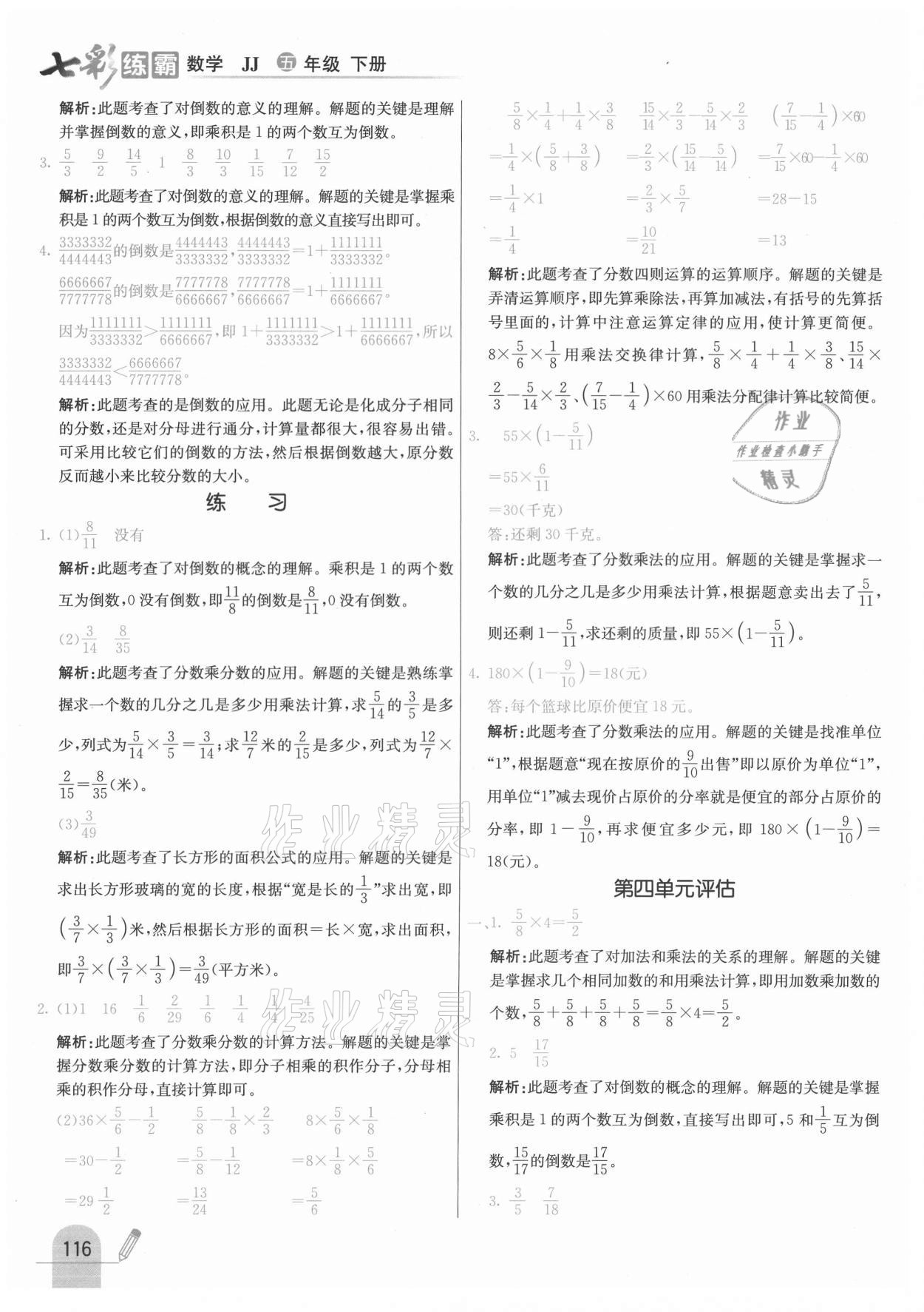 注:目前有些书本章节名称可能整理的还不是很完善,但都是按照顺序排列的,请同学们按照顺序仔细查找。练习册 2021年七彩练霸五年级数学下册冀教版 答案主要是用来给同学们做完题方便对答案用的,请勿直接抄袭。