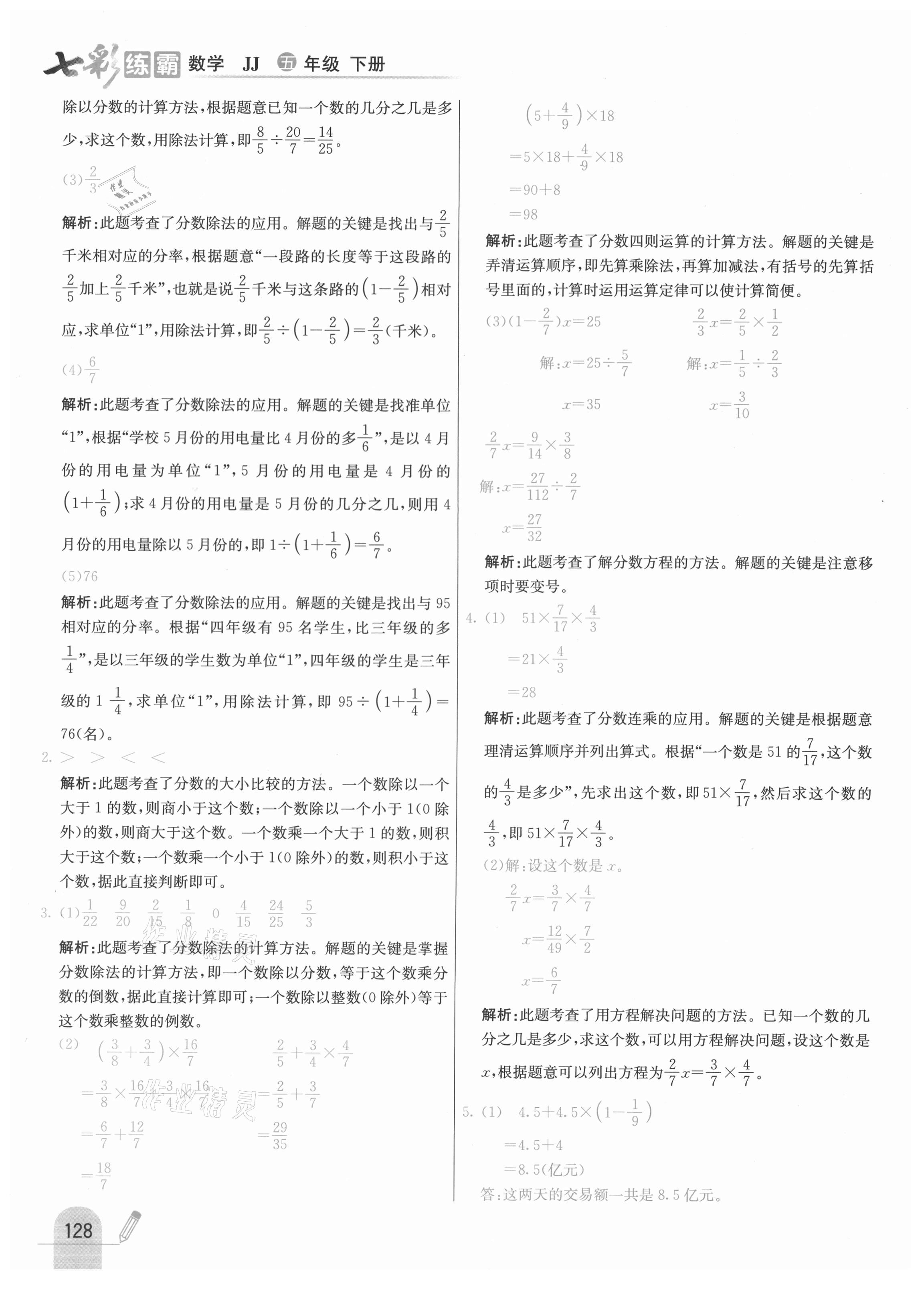 注:目前有些书本章节名称可能整理的还不是很完善,但都是按照顺序排列的,请同学们按照顺序仔细查找。练习册 2021年七彩练霸五年级数学下册冀教版 答案主要是用来给同学们做完题方便对答案用的,请勿直接抄袭。
