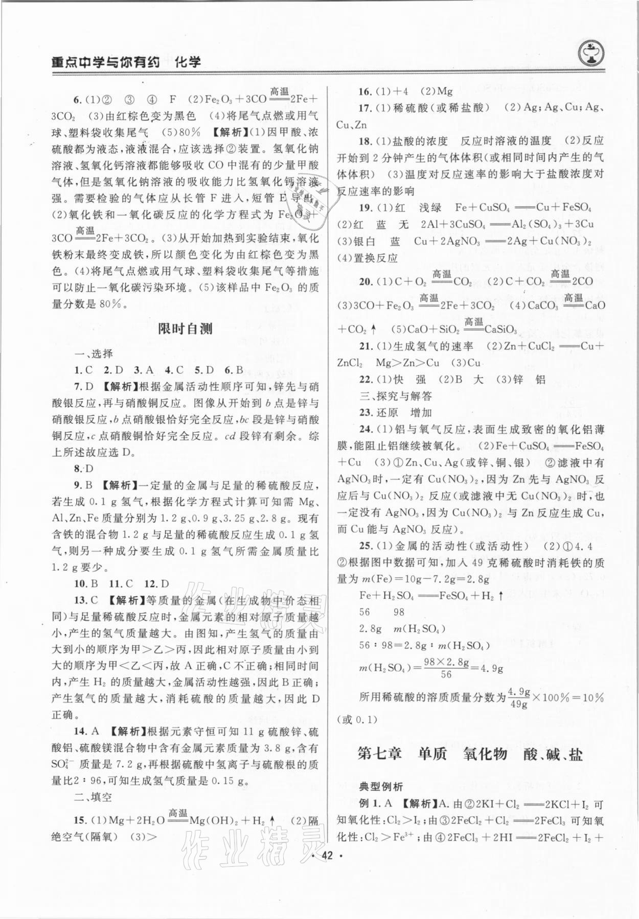 注:目前有些书本章节名称可能整理的还不是很完善,但都是按照顺序排列的,请同学们按照顺序仔细查找。练习册 2021年重点中学与你有约化学中考浙江专版 答案主要是用来给同学们做完题方便对答案用的,请勿直接抄袭。