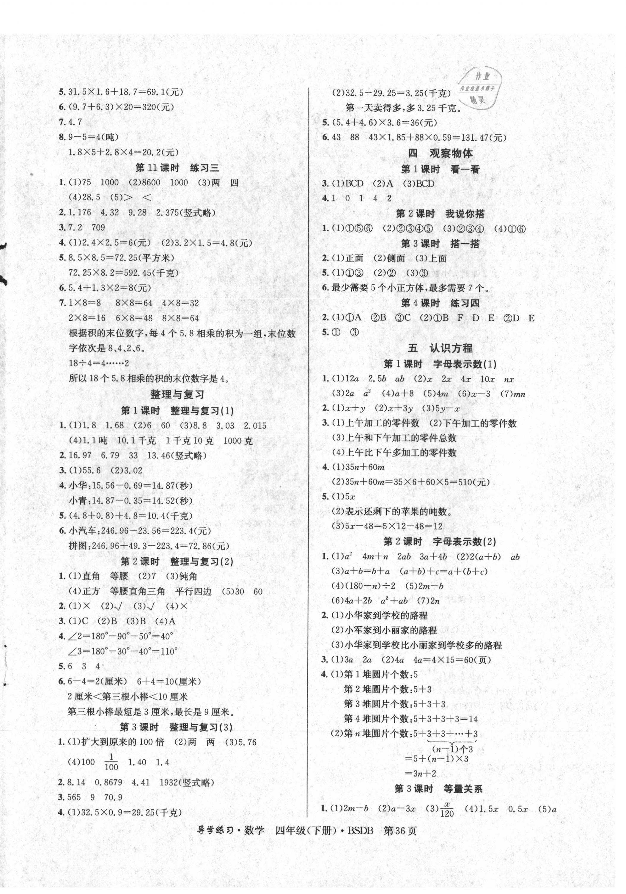 注:目前有些书本章节名称可能整理的还不是很完善,但都是按照顺序排列的,请同学们按照顺序仔细查找。练习册 2021年乐享导学练习四年级数学下册北师大版 答案主要是用来给同学们做完题方便对答案用的,请勿直接抄袭。