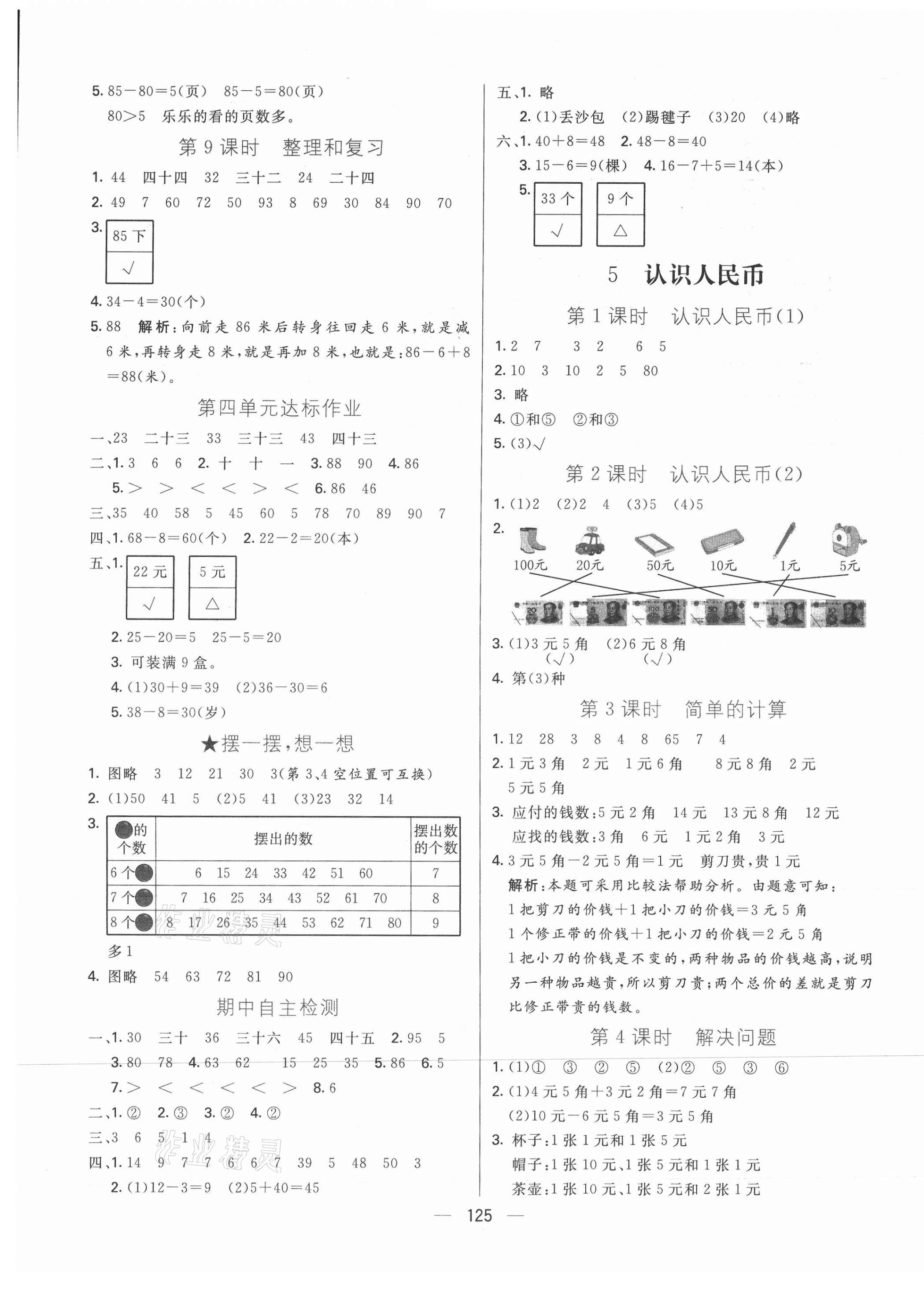 注:目前有些书本章节名称可能整理的还不是很完善,但都是按照顺序排列的,请同学们按照顺序仔细查找。练习册 2021年亮点激活教材多元演练一年级数学下册人教版 答案主要是用来给同学们做完题方便对答案用的,请勿直接抄袭。
