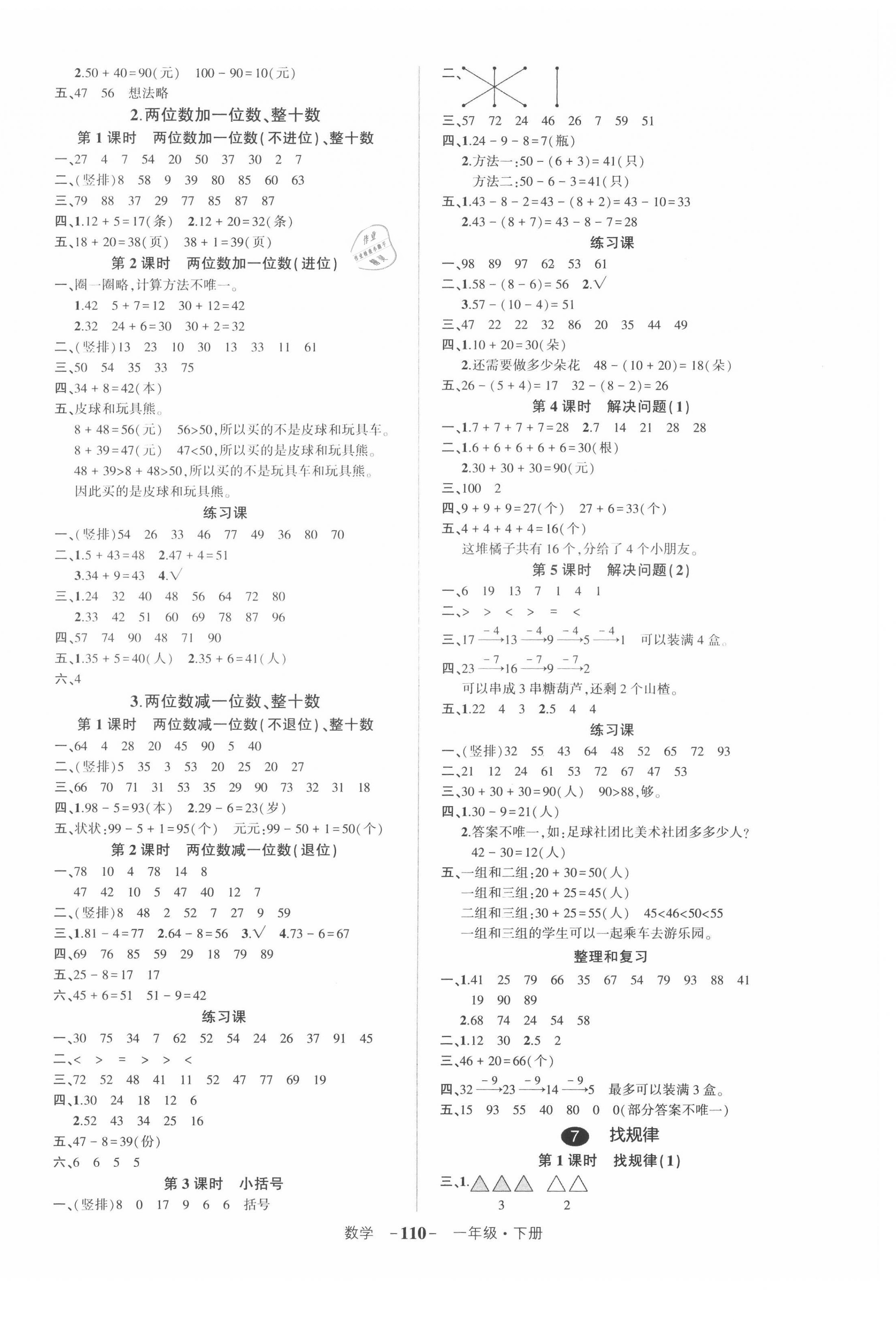 注:目前有些书本章节名称可能整理的还不是很完善,但都是按照顺序排列的,请同学们按照顺序仔细查找。练习册 2021年状元成才路创优作业100分一年级数学下册人教版湖南专版 答案主要是用来给同学们做完题方便对答案用的,请勿直接抄袭。